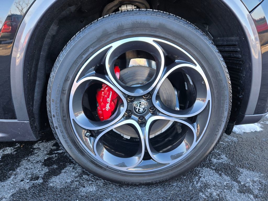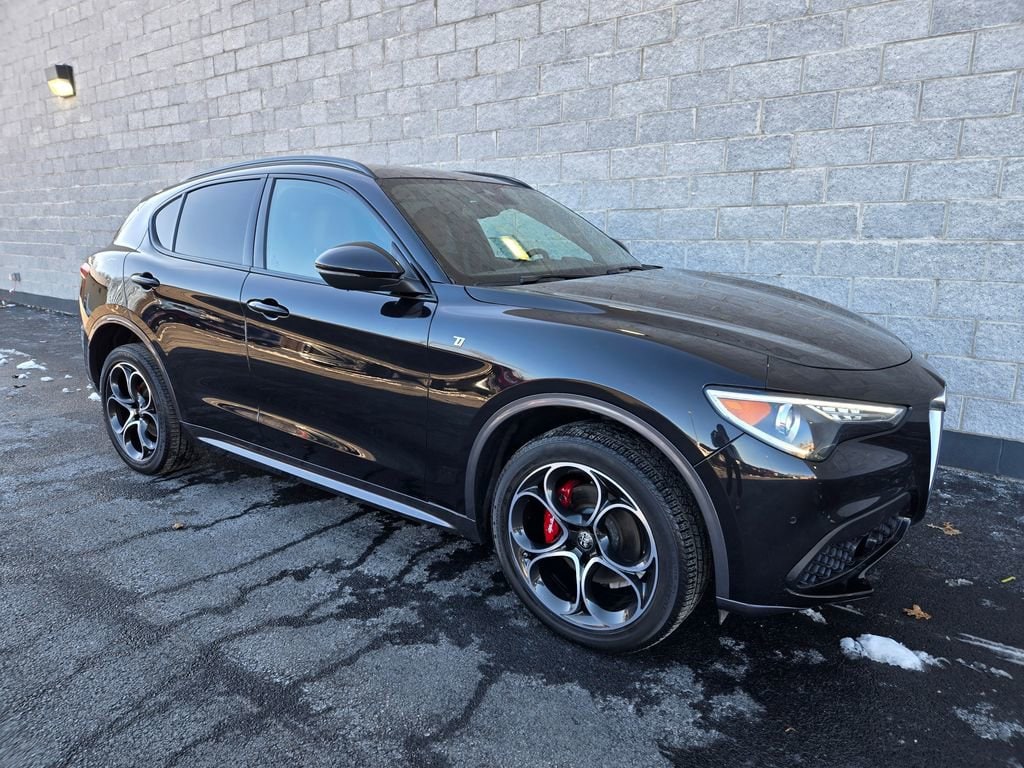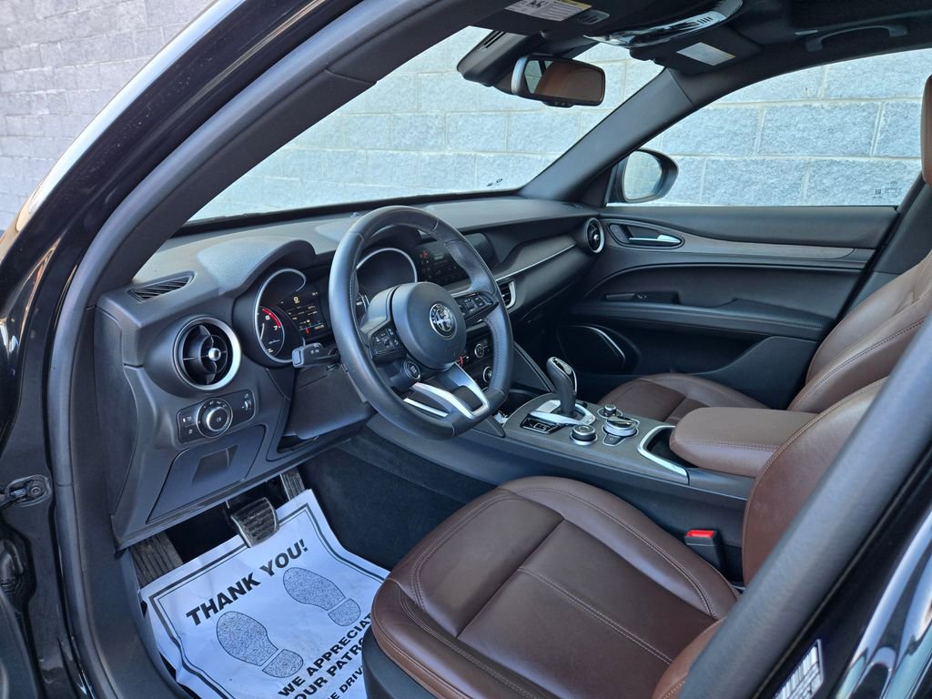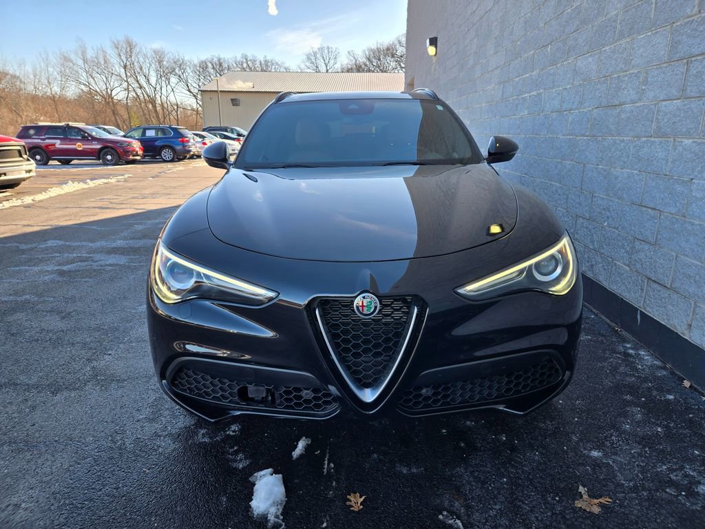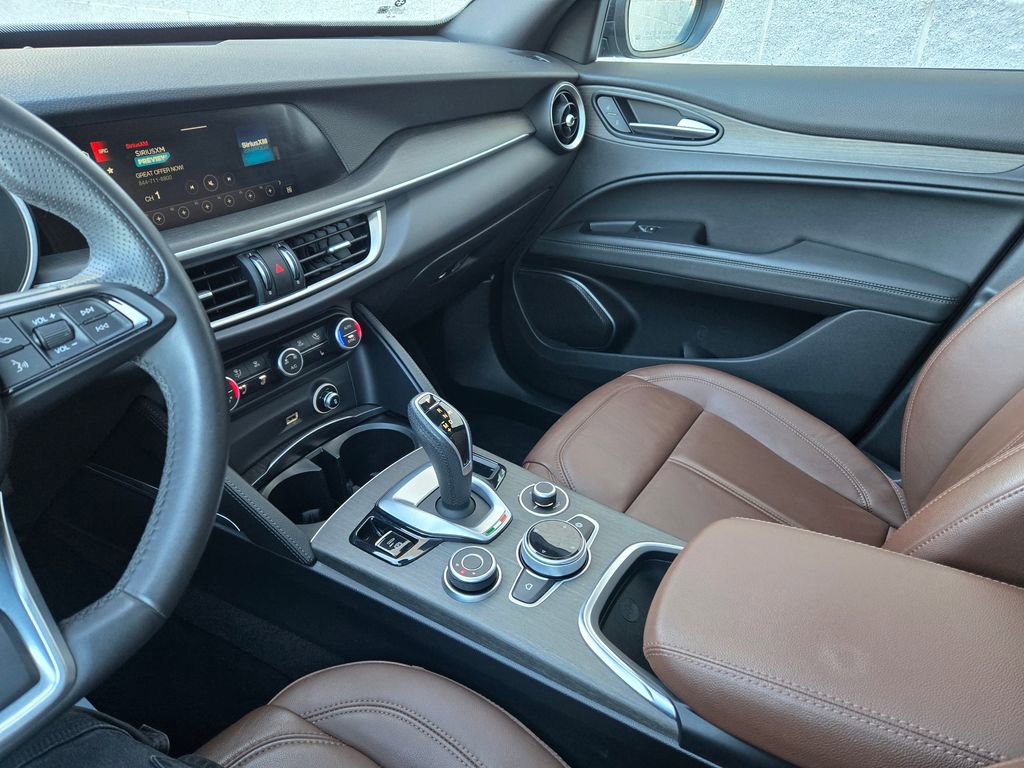 1 OWNER, ADAPTIVE CRUISE CONTROL, APPLE CAR PLAY, ANDROID AUTO, GPS NAVIGATION, REMOTE START, PUSH BUTTON START, KEYLESS ENTRY, HEATED FRONT SEATS, HEATED STEERING WHEEL, ALL WHEEL DRIVE / AWD, TINTED WINDOWS, POWER LUMBAR ADJUSTABLE DRIVER SEAT, POWER DRIVER SEAT, POWER DRIVER AND PASSENGER SEATS, HEATED REAR SEATING, RAIN SENSING WIPERS, BLUTOOTH, PANORAMIC MOONROOF / SUNROOF, POWER MOONROOF / SUNROOF, HD RADIO, UNIVERSAL GARAGE DOOR OPENER, LEATHER SEATING, LANE DEPARTURE WARNING, BLIND SPOT WARNING, FORWARD COLLISION WARNING SYSTEM, FULL-SPEED FORWARD-COLLISION WARNING PLUS, PARKVIEW REAR BACK UP CAMERA, BLIND SPOT AND CROSS PATH DETECTION, ALUMINUM WHEELS, PREMIUM ALUMINUM WHEELS, STEERING WHEEL W/ AUDIO CONTROLS, DRIVER SEAT MEMORY, INTEGRATED VOICE COMMAND W/ BLUETOOTH, 3 MONTH FREE TRIAL SUBSCRIPTION SiriusXM SATELLITE RADIO, DEEP TINT SUNSCREEN (PRIVACY) GLASS, WIRELESS CHARGING PAD, CHOCOLATE LEATHER SEATING, 20 INCH SPORT 5-HOLE ALUMINUM WHEELS, DUAL DARK EXHAUST TIPS, AMBIENT LIGHTING PACKAGE, LED INTERIOR LIGHTING, Stelvio Ti, 4D Sport Utility, I4, 8-Speed Automatic, AWD, Vulcano Black Metallic, Black Leather, Brake assist, Driver door bin, Driver vanity mirror, Electronic Stability Control, Four wheel independent suspension, Front reading lights, Garage door transmitter, Genuine wood console insert, Genuine wood dashboard insert, Genuine wood door panel insert, Heated steering wheel, Illuminated entry, Lane Keep Assist, Memory seat, Navigation System, Power Adjust 6-Way Driver Seat, Power Adjust 6-Way Front Passenger Seat, Power Liftgate, Quick Order Package 22G Ti, Remote keyless entry, Silver Ti Badge, Speed-sensing steering, Traction control, Vesuvio Gray Body Kit, Wheels: 20" x 8.5" Sport 5-Hole Aluminum.