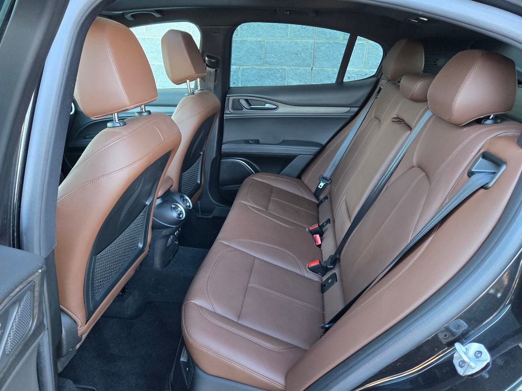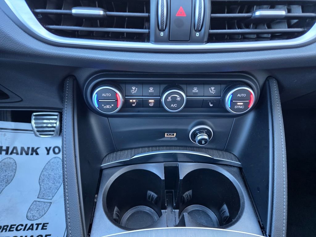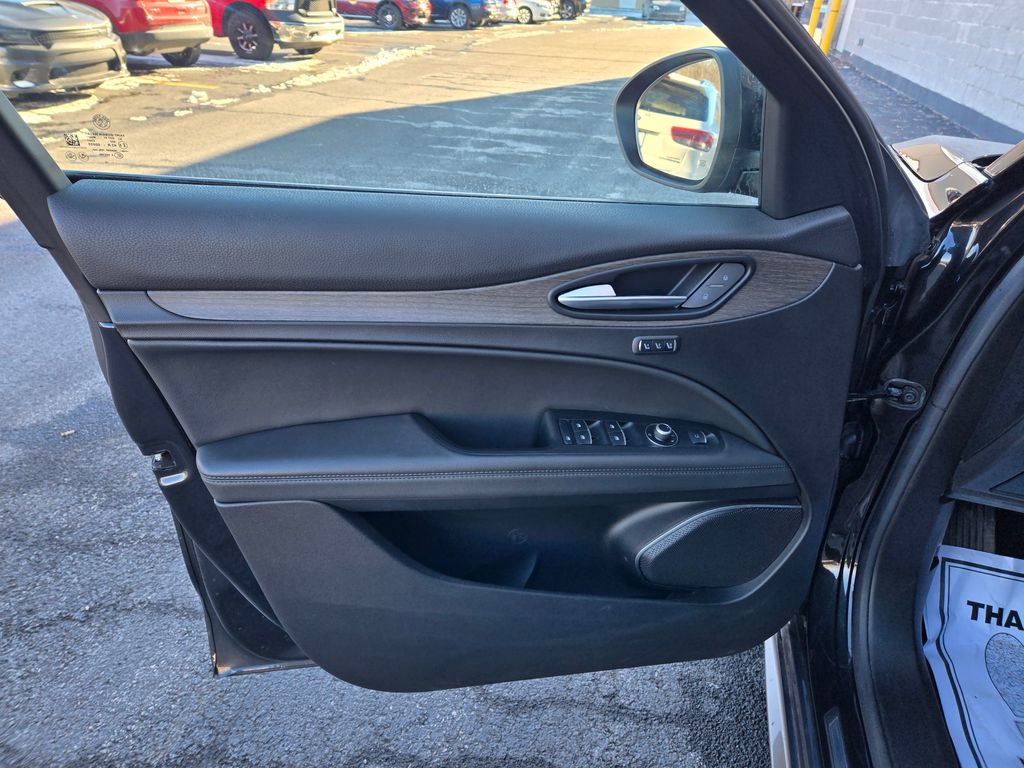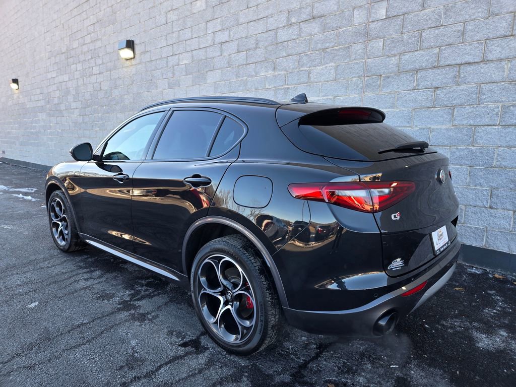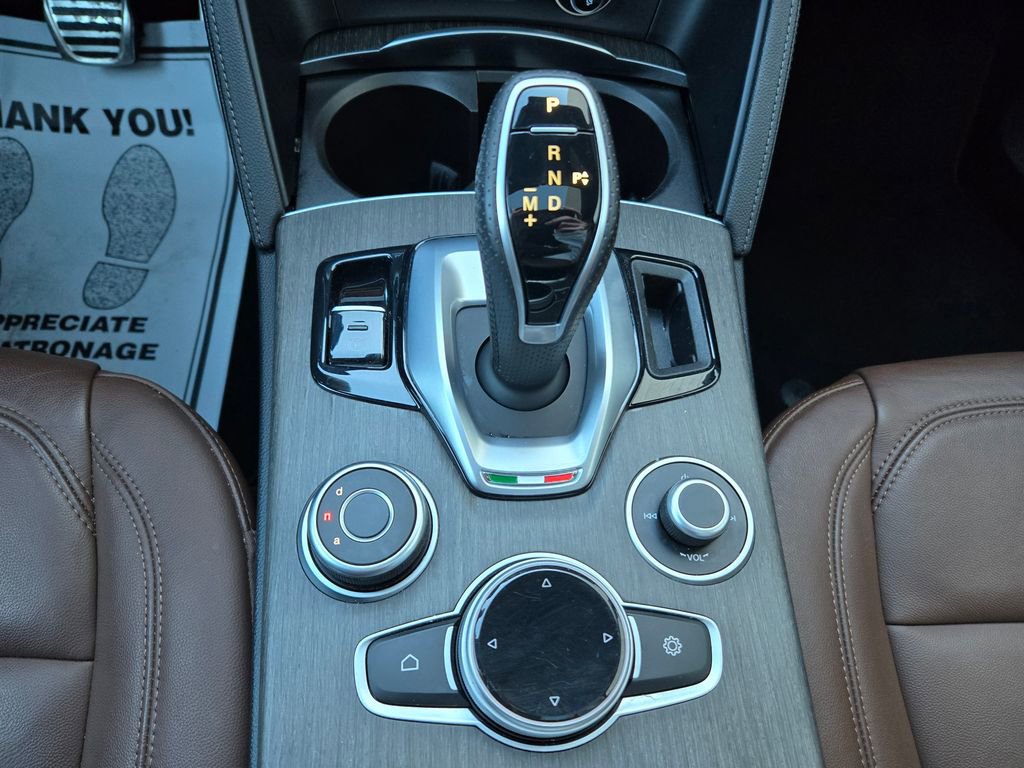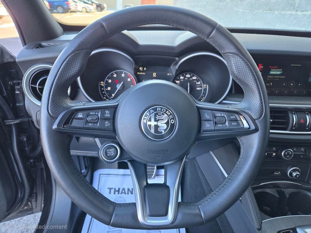 1 OWNER, ADAPTIVE CRUISE CONTROL, APPLE CAR PLAY, ANDROID AUTO, GPS NAVIGATION, REMOTE START, PUSH BUTTON START, KEYLESS ENTRY, HEATED FRONT SEATS, HEATED STEERING WHEEL, ALL WHEEL DRIVE / AWD, TINTED WINDOWS, POWER LUMBAR ADJUSTABLE DRIVER SEAT, POWER DRIVER SEAT, POWER DRIVER AND PASSENGER SEATS, HEATED REAR SEATING, RAIN SENSING WIPERS, BLUTOOTH, PANORAMIC MOONROOF / SUNROOF, POWER MOONROOF / SUNROOF, HD RADIO, UNIVERSAL GARAGE DOOR OPENER, LEATHER SEATING, LANE DEPARTURE WARNING, BLIND SPOT WARNING, FORWARD COLLISION WARNING SYSTEM, FULL-SPEED FORWARD-COLLISION WARNING PLUS, PARKVIEW REAR BACK UP CAMERA, BLIND SPOT AND CROSS PATH DETECTION, ALUMINUM WHEELS, PREMIUM ALUMINUM WHEELS, STEERING WHEEL W/ AUDIO CONTROLS, DRIVER SEAT MEMORY, INTEGRATED VOICE COMMAND W/ BLUETOOTH, 3 MONTH FREE TRIAL SUBSCRIPTION SiriusXM SATELLITE RADIO, DEEP TINT SUNSCREEN (PRIVACY) GLASS, WIRELESS CHARGING PAD, CHOCOLATE LEATHER SEATING, 20 INCH SPORT 5-HOLE ALUMINUM WHEELS, DUAL DARK EXHAUST TIPS, AMBIENT LIGHTING PACKAGE, LED INTERIOR LIGHTING, Stelvio Ti, 4D Sport Utility, I4, 8-Speed Automatic, AWD, Vulcano Black Metallic, Black Leather, Brake assist, Driver door bin, Driver vanity mirror, Electronic Stability Control, Four wheel independent suspension, Front reading lights, Garage door transmitter, Genuine wood console insert, Genuine wood dashboard insert, Genuine wood door panel insert, Heated steering wheel, Illuminated entry, Lane Keep Assist, Memory seat, Navigation System, Power Adjust 6-Way Driver Seat, Power Adjust 6-Way Front Passenger Seat, Power Liftgate, Quick Order Package 22G Ti, Remote keyless entry, Silver Ti Badge, Speed-sensing steering, Traction control, Vesuvio Gray Body Kit, Wheels: 20" x 8.5" Sport 5-Hole Aluminum.