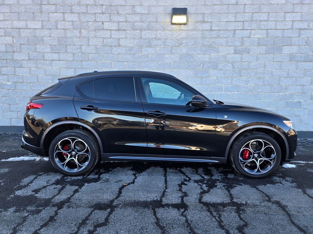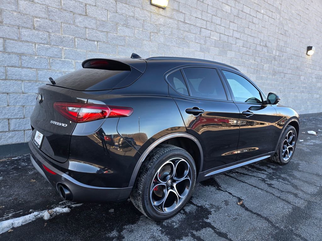 Vulcano Black Metallic 2023 Alfa Romeo Stelvio 4D Sport Utility Ti I4 22/28 City/Highway MPG 8-Speed Automatic AWD