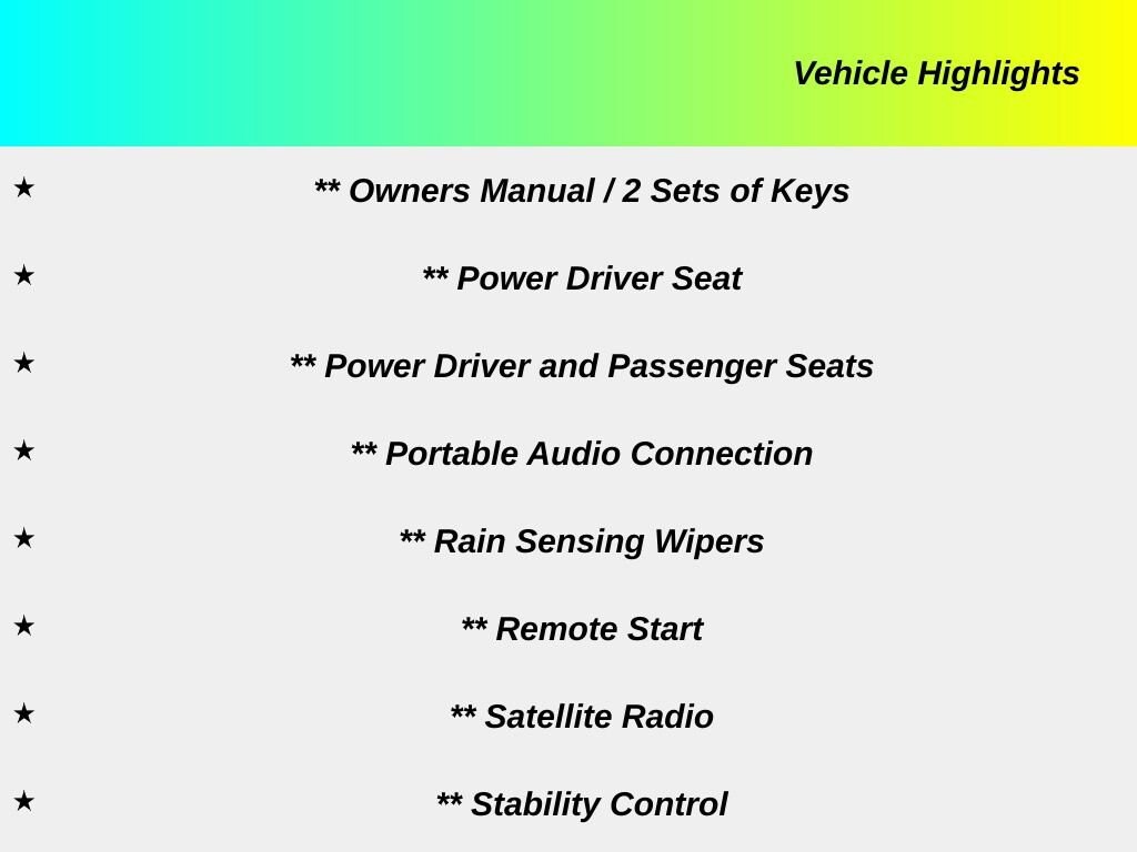 All applicable factory rebates applied and available to all buyers. Pricing shown excludes sales tax, license fees, documentary fee. Additional factory rebates may be available to qualified buyers. Must qualify for financing to received special offers. See dealer for eligibility.