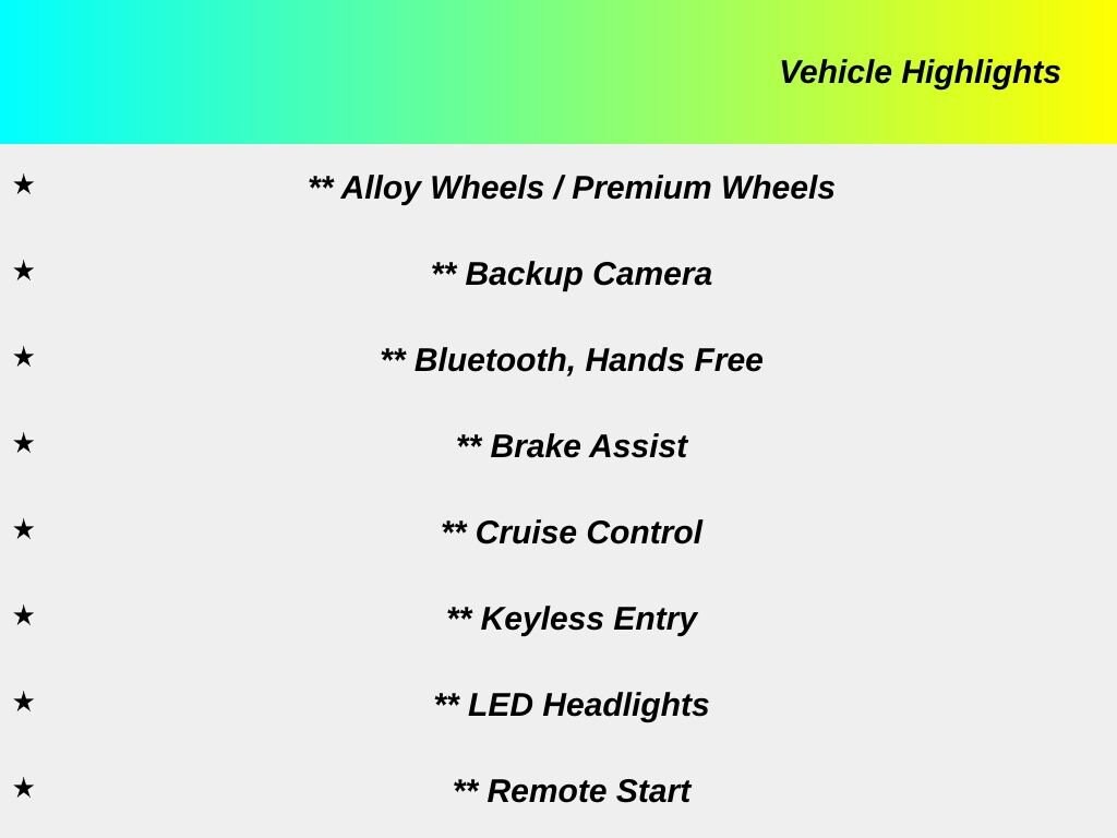 All applicable factory rebates applied and available to all buyers. Pricing shown excludes sales tax, license fees, documentary fee. Additional factory rebates may be available to qualified buyers. Must qualify for financing to received special offers. See dealer for eligibility.