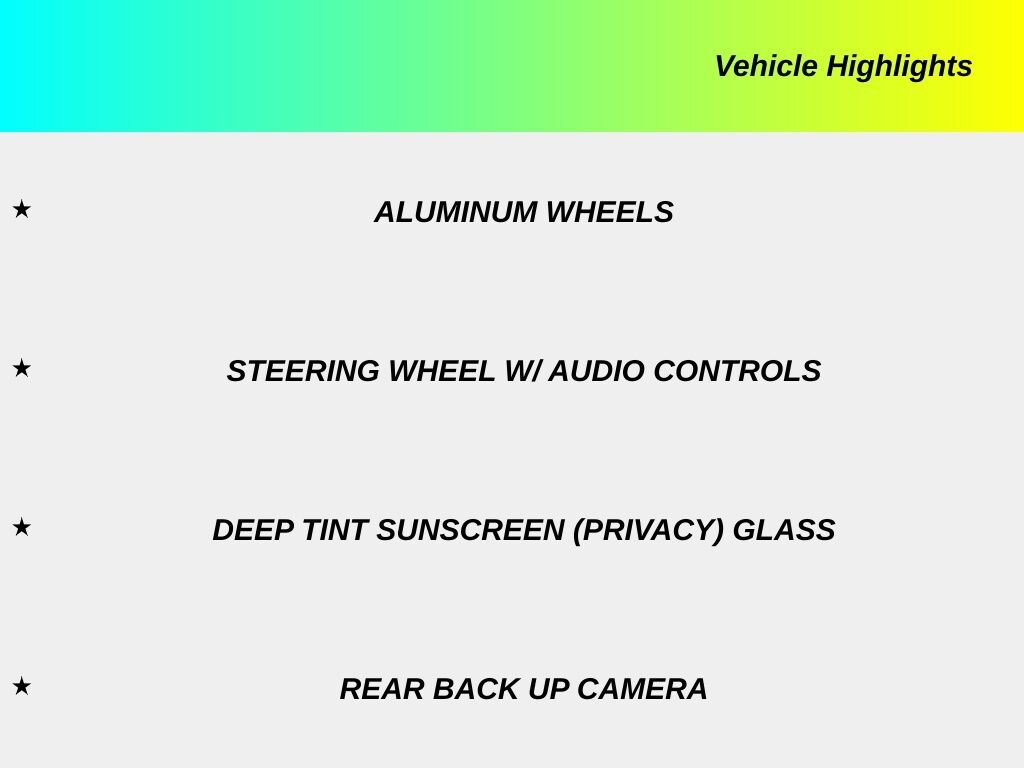 Privacy glass and aluminum wheels