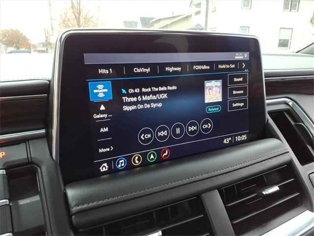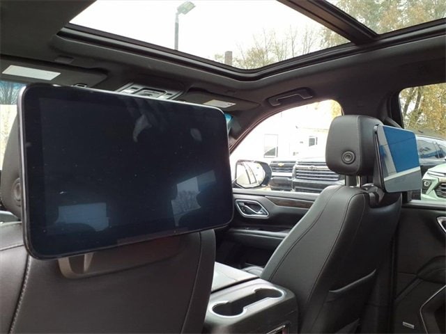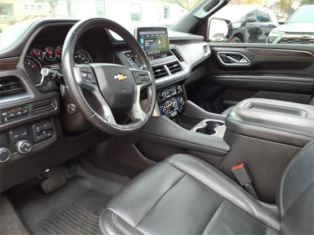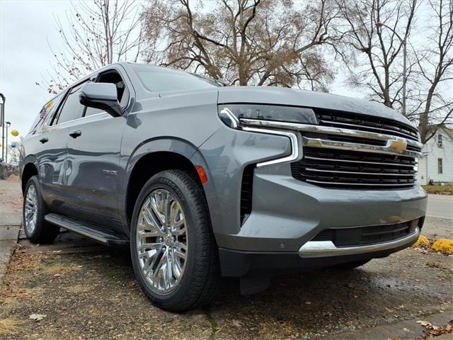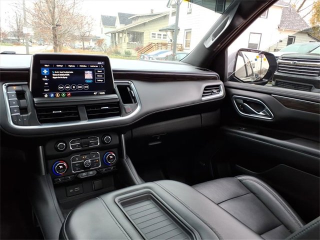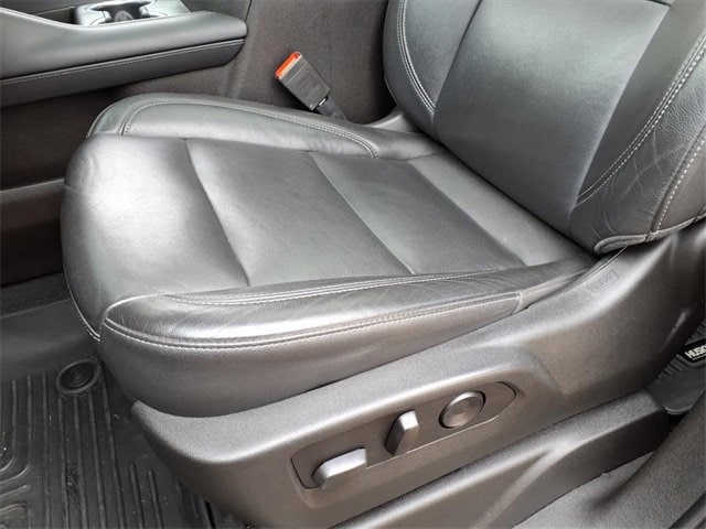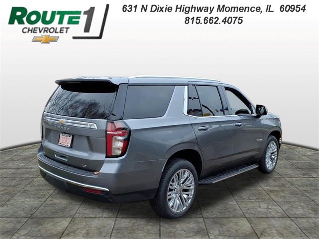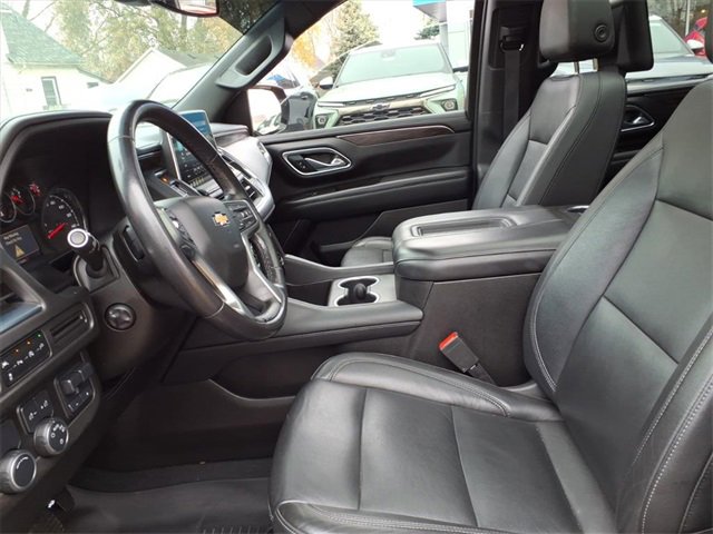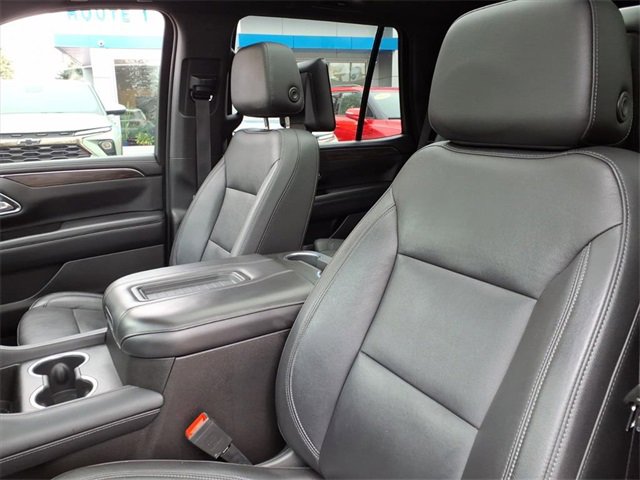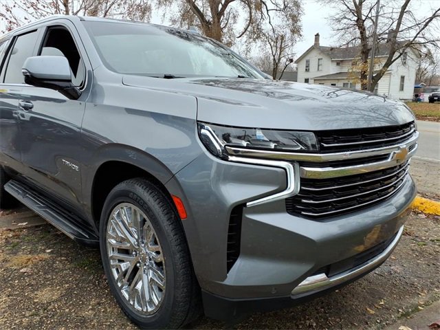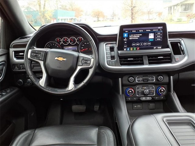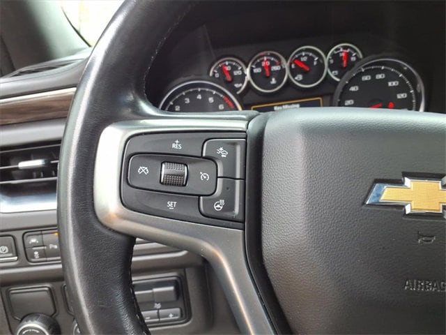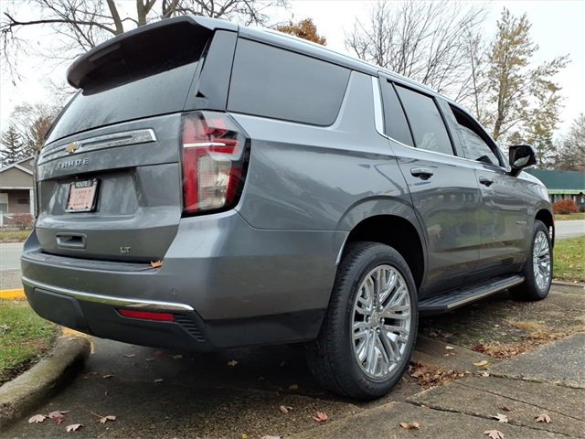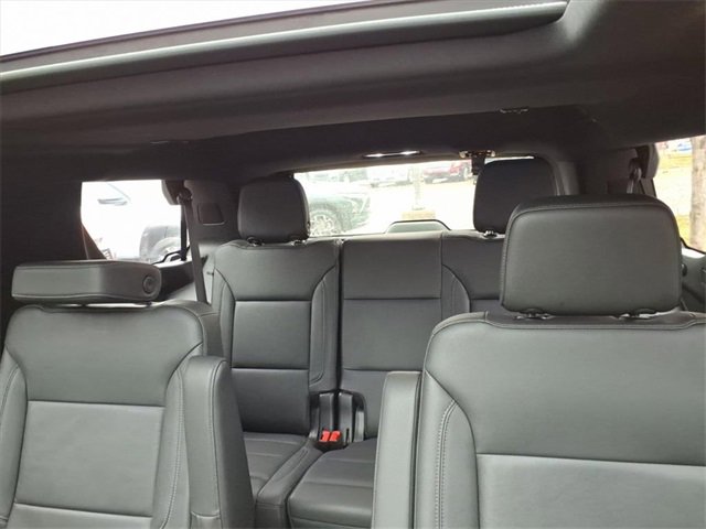 Satin Steel Metallic 2021 Chevrolet Tahoe LT RWD 10-Speed Automatic with Overdrive EcoTec3 5.3L V8 Black Leather, 10-Way Power Driver & Passenger Seat Adjusters, 1st & 2nd Row Color-Keyed Carpeted Floor Mats, 2 USB Data Ports, 2nd Row Pwr Release 60/40 Split-Folding Bench Seat, 3.23 Rear Axle Ratio, 3rd Row 60/40 Power-Folding Split-Bench Seat, 3rd row seats: split-bench, 4-Wheel Disc Brakes, 9 Speakers, ABS brakes, Advanced Trailering Package, Advanced Trailering System, Air Conditioning, Alloy wheels, AM/FM radio: SiriusXM with 360L, Apple CarPlay/Android Auto, Auto High-beam Headlights, Auto-Dimming Inside Rear-View Mirror, Auto-dimming Rear-View mirror, Automatic Heated Steering Wheel, Automatic temperature control, Bose 9-Speaker Stereo Audio System Feature, Brake assist, Bright Front & Rear Door Sill Plates, Bumpers: body-color, Color-Keyed Carpeting Floor Covering, Compass, Delay-off headlights, Driver & Front Outboard Passenger Airbags, Driver Alert Package, Driver door bin, Driver vanity mirror, Dual front impact airbags, Dual front side impact airbags, Dual-Pane Power Panoramic Sunroof, Electronic Stability Control, Emergency communication system: OnStar and Chevrolet connected services capable, Extra Capacity Cooling System, Floor Console w/Storage Area, Four wheel independent suspension, Front & Rear Park Assist, Front anti-roll bar, Front Bucket Seats, Front Center Armrest, Front dual zone A/C, Front High-Back Reclining Bucket Seats, Front reading lights, Fully automatic headlights, Garage door transmitter, Hands-Free Rear Power Programmable Liftgate, HD Radio, HD Surround Vision, Heated 2nd Row Outboard Seats, Heated door mirrors, Heated Driver & Front Passenger Seats, Heated front seats, Hitch Guidance w/Hitch View, Illuminated entry, Infotainment Display, Integrated Trailer Brake Controller, Lane Change Alert w/Side Blind Zone Alert, Lane Keep Assist w/Lane Departure Warning, Leather Seat Trim, Leather steering wheel, Leather-Wrapped Steering Wheel, LED Daytime Running Lamps, Low tire pressure warning, LT Signature Package, Luxury Package, Max Trailering Package, Memory seat, Memory Settings, Memory Settings for Driver, Occupant sensing airbag, Outside Heated Power-Adjustable Mirrors, Outside temperature display, Overhead airbag, Overhead console, Panic alarm, Passenger door bin, Passenger vanity mirror, Power door mirrors, Power driver seat, Power Liftgate, Power passenger seat, Power Release 2nd Row Bucket Seats, Power steering, Power Tilt & Telescopic Steering Column, Power windows, Preferred Equipment Group 1LT, Premium audio system: Chevrolet Infotainment 3, Premium Smooth Ride Suspension, Radio: Chevrolet Infotainment 3 Plus System, Radio: Chevrolet Infotainment 3 Premium System, Rain sensing wipers, Rear air conditioning, Rear anti-roll bar, Rear Cross Traffic Alert, Rear Media & Nav Package, Rear Pedestrian Alert, Rear reading lights, Rear seat center armrest, Rear Seat Media System, Rear window defroster, Rear window wiper, Remote keyless entry, Remote Start, Roof rack: rails only, Security system, SiriusXM NavTraffic, SiriusXM Radio w/360L, Speed control, Speed-sensing steering, Split folding rear seat, Spoiler, Steering wheel mounted audio controls, Tachometer, Telescoping steering wheel, Tilt steering wheel, Traction control, Trip computer, Universal Home Remote, Variably intermittent wipers, Voltmeter, Wheels: 18 x 8.5 Bright Silver Painted Aluminum, Wheels: 20 x 9 Painted Aluminum.