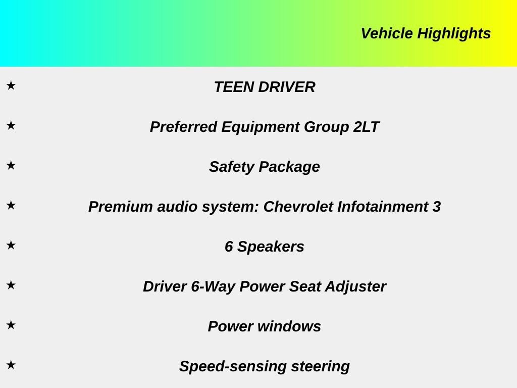 This Colorado LT also comes equipped with a host of advanced safety features, including the Fleet Safety Package with Automatic Emergency Braking, Rear Park Assist, and more. The Preferred Equipment Group 2LT adds even more desirable amenities, such as the premium audio system, power driver's seat, and a split-folding rear seat for enhanced versatility.