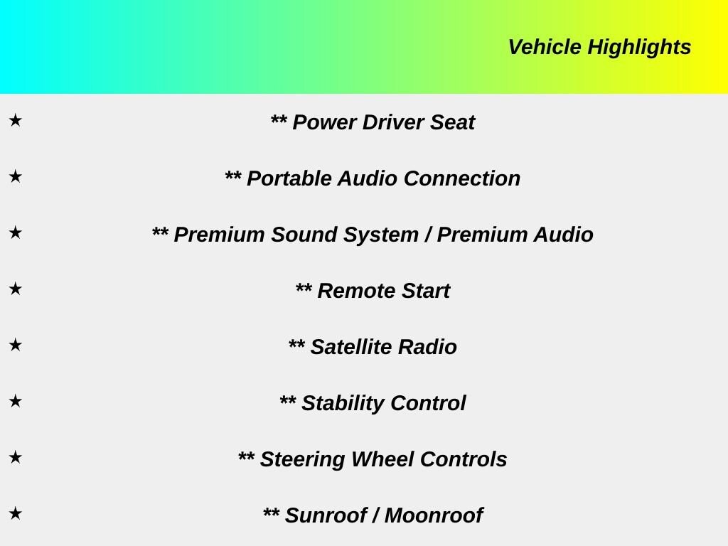 All applicable factory rebates applied and available to all buyers. Pricing shown excludes sales tax, license fees, documentary fee. Additional factory rebates may be available to qualified buyers. Must qualify for financing to received special offers. See dealer for eligibility.