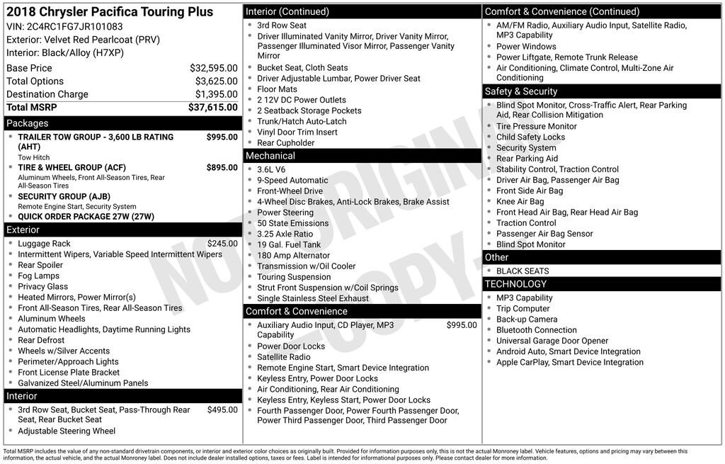 2018 Chrysler Pacifica Touring Plus Velvet Red Pearlcoat FWD 3.6L V6 24V VVT