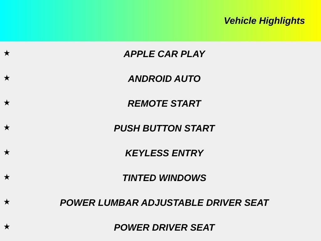 - Smart device integration: Apple CarPlay/Android Auto