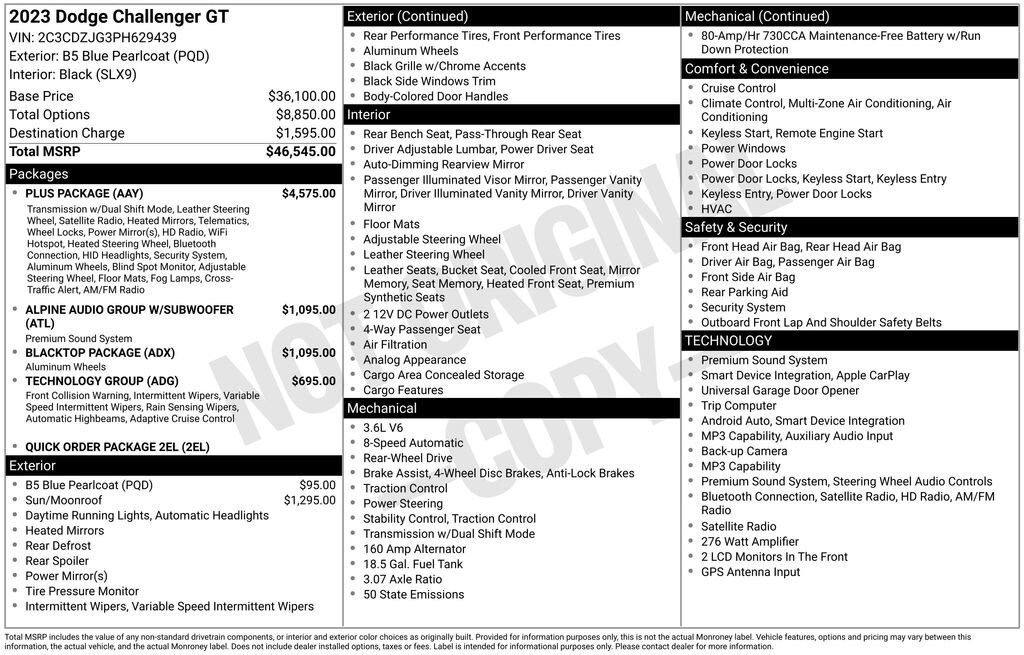 B5 Blue Pearlcoat 2023 Dodge Challenger 2D Coupe GT 3.6L V6 24V VVT 19/30 City/Highway MPG 8-Speed Automatic RWD