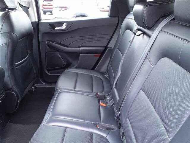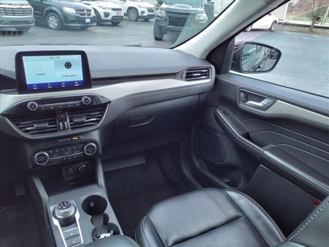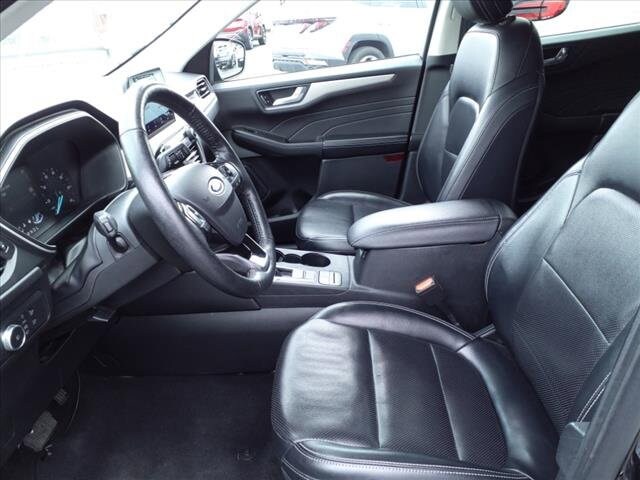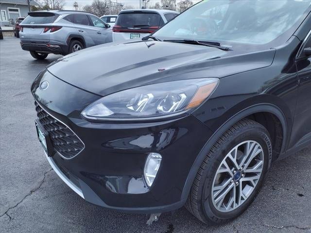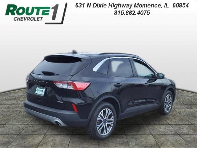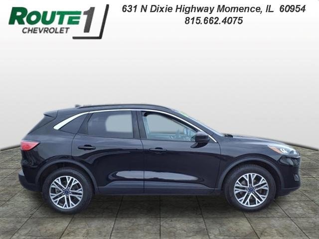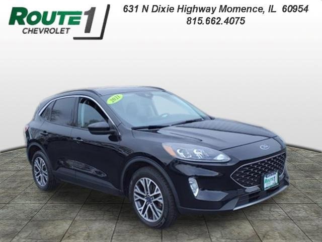 Black Metallic 2021 Ford Escape SEL AWD 8-Speed Automatic 1.5L EcoBoost AWD, 18 Machined-Face Aluminum Wheels, 3.81 Axle Ratio, 4-Wheel Disc Brakes, 6 Speakers, ABS brakes, Air Conditioning, Alloy wheels, AM/FM radio: SiriusXM, AM/FM Stereo, Auto High-beam Headlights, Automatic temperature control, Brake assist, Bumpers: body-color, Compass, Delay-off headlights, Driver door bin, Driver vanity mirror, Dual front impact airbags, Dual front side impact airbags, Electronic Stability Control, Emergency communication system: SYNC 3 911 Assist, Equipment Group 301A, Exterior Parking Camera Rear, FordPass Connect, Four wheel independent suspension, Front anti-roll bar, Front Bucket Seats, Front Center Armrest, Front dual zone A/C, Front fog lights, Front License Plate Bracket, Front reading lights, Fully automatic headlights, Heated ActiveX Front Sport Contour Bucket Seats, Heated door mirrors, Heated front seats, Heated steering wheel, Illuminated entry, Knee airbag, Low tire pressure warning, Occupant sensing airbag, Outside temperature display, Overhead airbag, Overhead console, Panic alarm, Passenger door bin, Passenger vanity mirror, Power door mirrors, Power driver seat, Power Liftgate, Power steering, Power windows, Radio data system, Rear anti-roll bar, Rear reading lights, Rear seat center armrest, Rear window defroster, Rear window wiper, Remote keyless entry, Roof rack: rails only, Speed control, Speed-sensing steering, Speed-Sensitive Wipers, Split folding rear seat, Spoiler, Steering wheel mounted audio controls, SYNC 3 Communications & Entertainment System, Tachometer, Telescoping steering wheel, Tilt steering wheel, Traction control, Trip computer, Variably intermittent wipers.