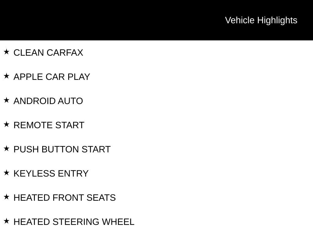 - Remote engine start: keyfob and smart device (subscription required)