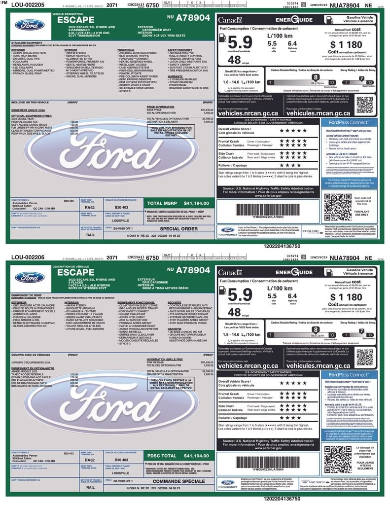 White Escape Hybrid titanium. Glad we decided on this instead of Rav4. It's a luxury car for us 'middle-weight' type people. Everything is fine...right now. More satisfied with the 2020 model than our 2016 titanium. Quiet, handles well, like switches, leather upholstery comfortable, visibility good, safety good, very good audio, and good grunt when needed. Driving 2/3's city and 1/3rd highways(2 lane mostly) currently averaging 42.2 mpg!' - 5.0