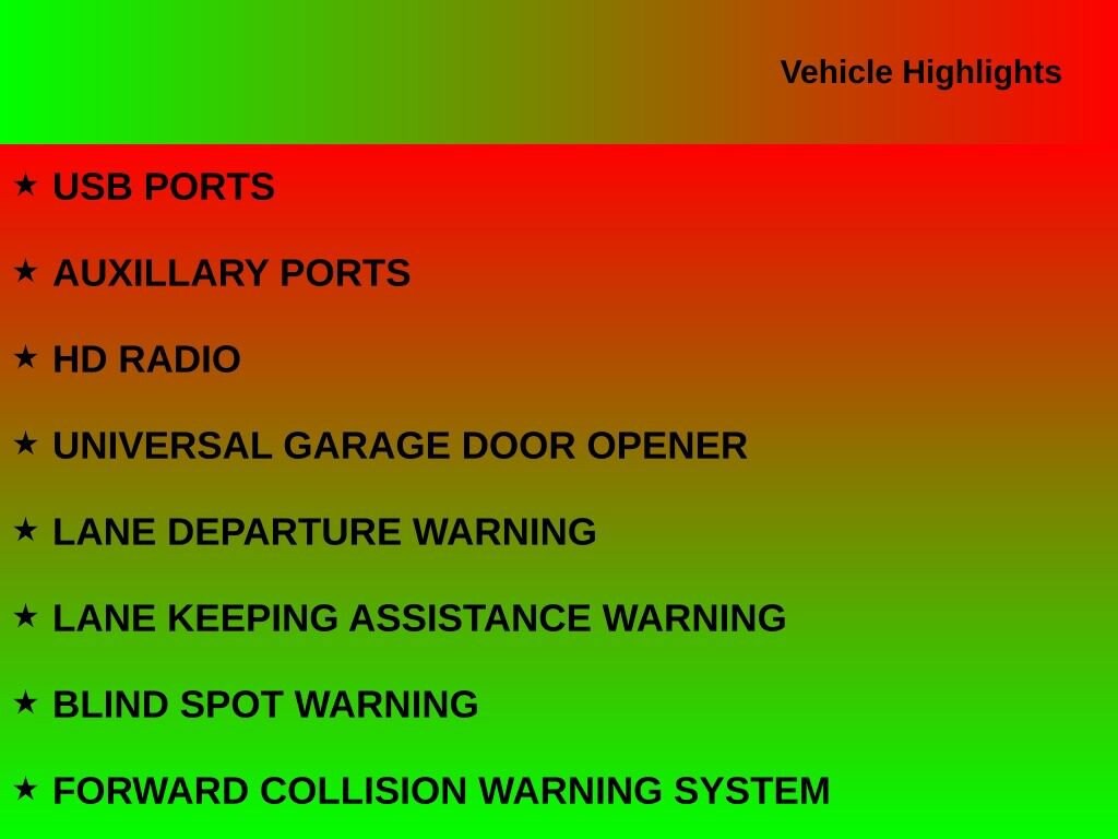 - Forward collision: Forward Collision-Avoidance Assist (FCA) mitigation w/left turn assist