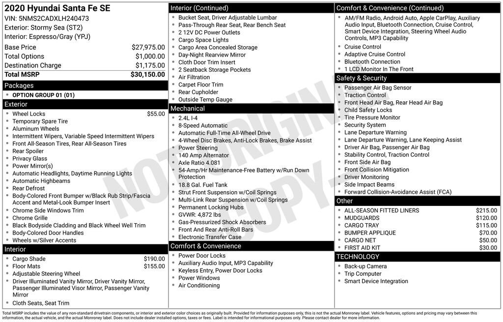 Recent Arrival! 2020 Hyundai Santa Fe SE CARFAX One-Owner. Stormy Sea