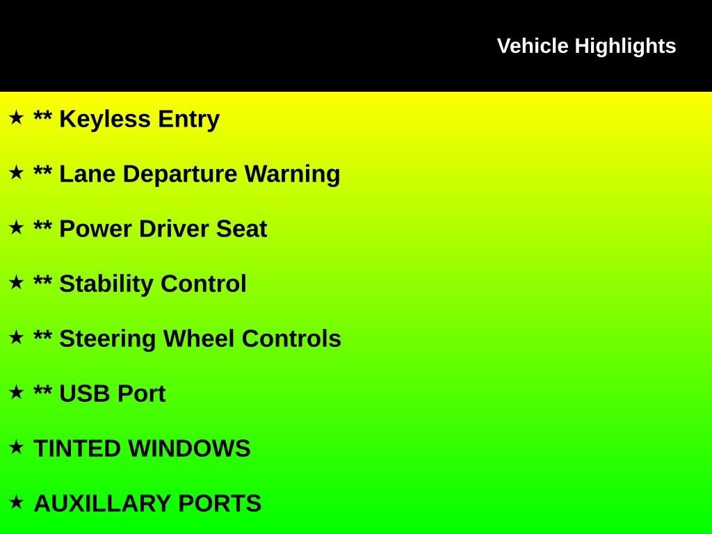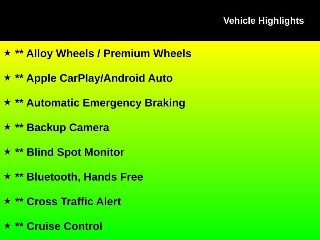 ** Alloy Wheels / Premium Wheels, ** Apple CarPlay/Android Auto, ** Automatic Emergency Braking, ** Backup Camera, ** Blind Spot Monitor, ** Bluetooth, Hands Free, ** Cross Traffic Alert, ** Cruise Control, ** Keyless Entry, ** Lane Departure Warning, ** Power Driver Seat, ** Stability Control, ** Steering Wheel Controls, ** USB Port, TINTED WINDOWS, AUXILLARY PORTS, FORWARD COLLISION WARNING SYSTEM, ** 1 12V Power Outlet, Elantra SE, 4D Sedan, I4, CVT, FWD, Serenity White, Black Cloth, Auto High-beam Headlights, Cargo Net, Option Group 01, Radio: AM/FM/HD Display Audio.