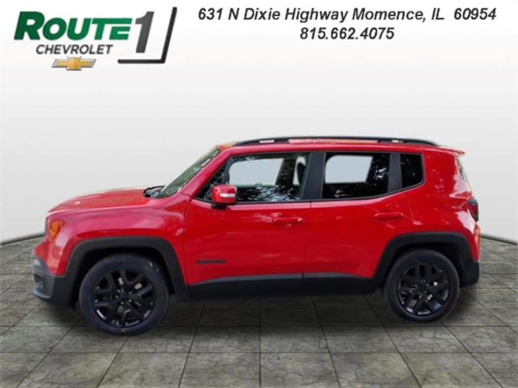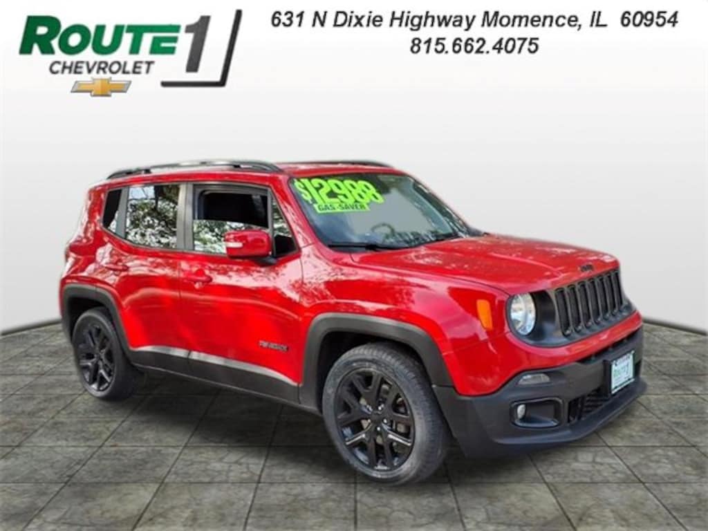 Colorado Red 2018 Jeep Renegade Altitude FWD 9-Speed 948TE Automatic 2.4L I4 16 x 6.5 Aluminum Wheels, 4-Wheel Disc Brakes, 6 Speakers, ABS brakes, Air Conditioning, Alloy wheels, Altitude Package, AM/FM radio: SiriusXM, Anti-whiplash front head restraints, Apple CarPlay/Android Auto, Automatic temperature control, Black Accent Stitching, Black Day Light Opening Moldings, Brake assist, Compass, Delay-off headlights, Deluxe Cloth High-Back Bucket Seats, Driver door bin, Driver vanity mirror, Dual front impact airbags, Dual front side impact airbags, Electronic Stability Control, Exterior Mirrors w/Supplemental Signals, Four wheel independent suspension, Front anti-roll bar, Front Bucket Seats, Front Center Armrest, Front dual zone A/C, Front fog lights, Front reading lights, Fully automatic headlights, Gloss Black Badging, Gloss Black Instrument Panel Bezels, Gloss Black Rear Fascia Applique, Heated door mirrors, Illuminated entry, Knee airbag, Leather steering wheel, Low tire pressure warning, Normal Duty Suspension, Occupant sensing airbag, Outside temperature display, Overhead airbag, Overhead console, Panic alarm, ParkView Rear Back-Up Camera, Passenger door bin, Passenger vanity mirror, Power door mirrors, Power steering, Power windows, Premium Cloth Bucket Seats, Quick Order Package 27L Altitude, Radio data system, Radio: Uconnect 4 w/7 Display, Rear anti-roll bar, Rear window defroster, Rear window wiper, Remote keyless entry, Roof rack: rails only, Speed control, Split folding rear seat, Spoiler, Steering wheel mounted audio controls, Tachometer, Telescoping steering wheel, Tilt steering wheel, Traction control, Trip computer, Variably intermittent wipers, Vinyl Door Trim Panel, Voltmeter, Wheels: 18 x 8.0 Gloss Black.Good Credit, Bad Credit, No Credit. Here at Route ! Chevrolet Buick we can help. Come feel the magic. We know that you have high expectations, and as a car dealer we enjoy the challenge of meeting and exceeding those standards each and every time. Allow us to demonstrate our commitment to excellence! NO GIMMICKS! Our experienced sales staff will help you find the best car for you. Browse our online inventory, schedule a test drive and look at our financing options. Find more information about our vehicles by visiting https://www.route1chevybuick.com or by calling (815)-472-3434. 22/30 City/Highway MPGAwards:* 2018 KBB.com 10 Best All-Wheel-Drive Vehicles Under $30,000 * 2018 KBB.com 10 Best All-Wheel-Drive Vehicles Under $25,000 * 2018 KBB.com 10 Coolest New Cars Under $20,000 * 2018 KBB.com 10 Most Awarded Brands