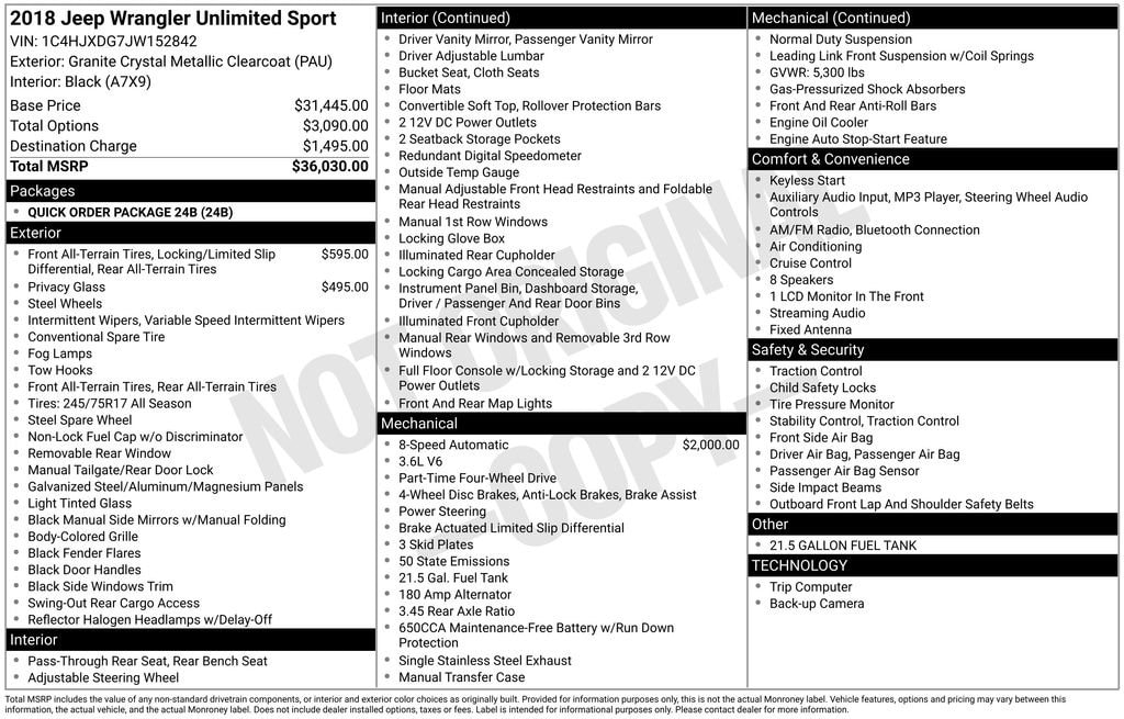 Whether you're seeking a capable off-road companion or a versatile daily driver, this 2018 Jeep Wrangler Unlimited Sport is an exceptional choice. With its impressive features, rugged performance, and exceptional value, it's the perfect vehicle to help you explore the world around you. Visit our showroom today to experience it for yourself and discover the freedom and adventure that awaits.