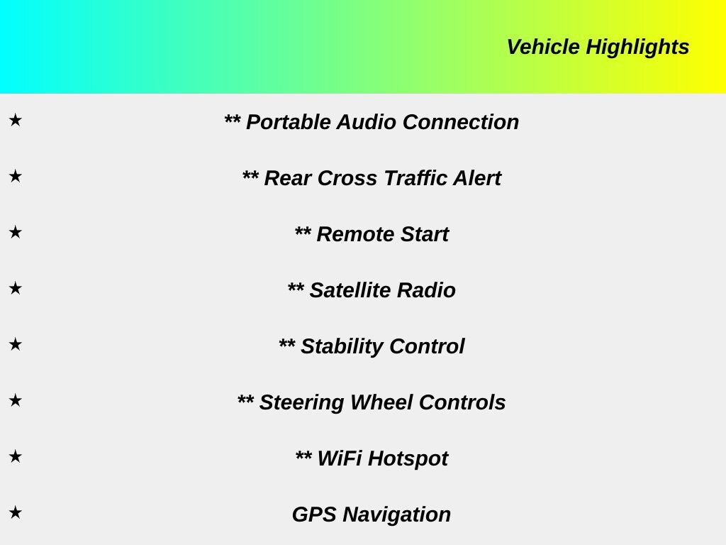 All applicable factory rebates applied and available to all buyers. Pricing shown excludes sales tax, license fees, documentary fee. Additional factory rebates may be available to qualified buyers. Must qualify for financing to received special offers. See dealer for eligibility.