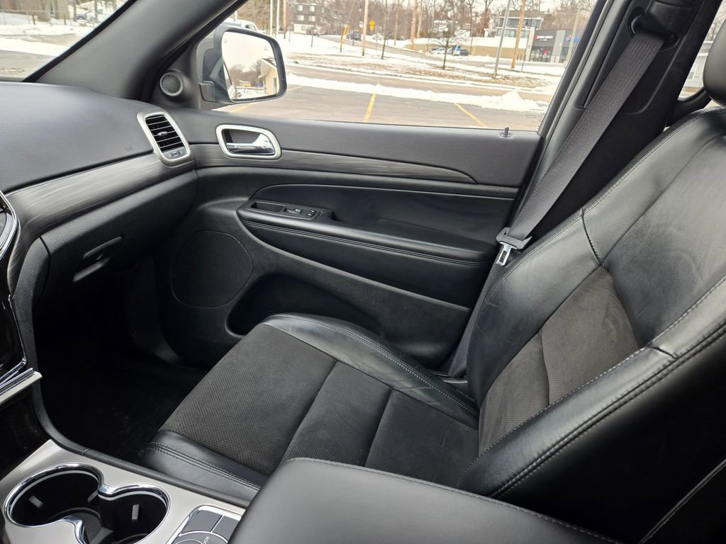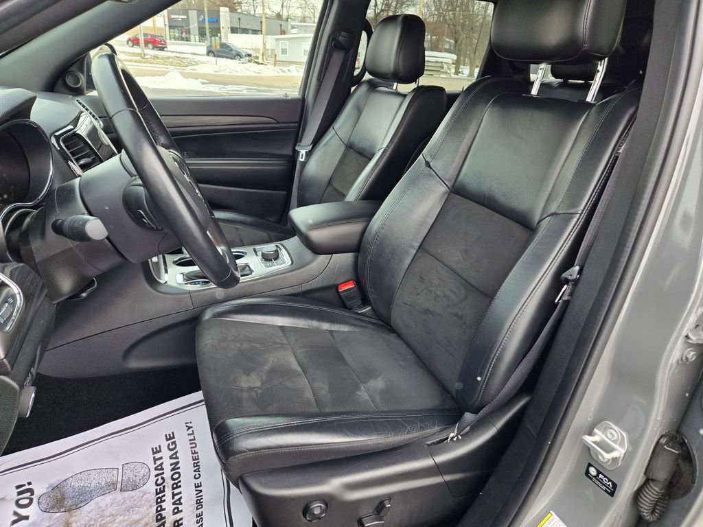 1 OWNER, APPLE CAR PLAY, ANDROID AUTO, GPS NAVIGATION, REMOTE START, UCONNECT 4 w/ 8.4-INCH TOUCH SCREEN DISPLAY, PUSH BUTTON START, KEYLESS ENTRY, HEATED FRONT SEATS, HEATED STEERING WHEEL, 4 WHEEL DRIVE / 4X4 / 4WD, TINTED WINDOWS, 8-WAY POWER DRIVER SEAT, POWER LUMBAR ADJUSTABLE DRIVER SEAT, POWER DRIVER SEAT, BLUTOOTH, AUXILLARY PORTS, LOCAL TRADE IN, POWER MOONROOF / SUNROOF, HD RADIO, UNIVERSAL GARAGE DOOR OPENER, BLIND SPOT WARNING, ALUMINUM WHEELS, STEERING WHEEL W/ AUDIO CONTROLS, Grand Cherokee WK Laredo X, 4D Sport Utility, 3.6L V6 24V VVT, 8-Speed Automatic, 4WD, Sting-Gray Clearcoat, Black Leather, 506 Watt Amplifier, 6 Speakers, Active Noise Control System, Altitude Appearance Package, Anti-whiplash front head restraints, Apple CarPlay/Android Auto, Auto High Beam Headlamp Control, Automatic temperature control, Bi-Xenon High-Intensity Discharge Headlamps, Brake assist, Bumpers: body-color, Cloth Bucket Seats, Compass, Delay-off headlights, Driver door bin, Driver vanity mirror, Electronic Stability Control, Emergency communication system: SiriusXM Guardian, Four wheel independent suspension, Front Bucket Seats, Front Center Armrest w/Storage, Front dual zone A/C, Front LED Fog Lamps, Front reading lights, Illuminated entry, LED Daytime Running Headlamps, Navigation System, Outside temperature display, Overhead airbag, Overhead console, Panic alarm, ParkView Rear Back-Up Camera, Passenger door bin, Passenger vanity mirror, Power driver seat, Premium Alpine Speaker System, Quadra-Trac II 4WD System, Quick Order Package 2GM Laredo X (DISC), Radio data system, Radio: Uconnect 4C Nav w/8.4" Display, Rear anti-roll bar, Rear reading lights, Rear seat center armrest, Remote keyless entry, Speed-sensing steering, Split folding rear seat, Steering wheel mounted audio controls, Tachometer, Tech Group, Tilt steering wheel, Trip computer, Wheels: 18" x 8.0" Fine Silver Aluminum.