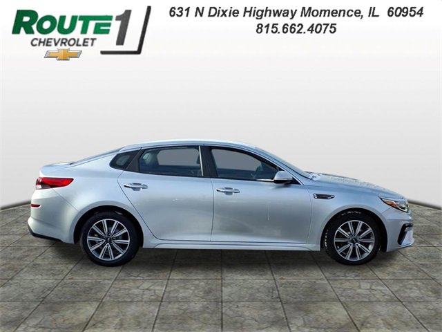 Sparkling Silver 2019 Kia Optima LX FWD 6-Speed Automatic with Sportmatic 2.4L I4 DGI DOHC Black Cloth, 17 Alloy Wheels, 4-Wheel Disc Brakes, 6 Speakers, 6.5J x 16 Silver Alloy Wheels, ABS brakes, Air Conditioning, Alloy wheels, AM/FM radio, Anti-whiplash front head restraints, Apple CarPlay & Android Auto, Auto High-beam Headlights, Brake assist, Bumpers: body-color, Cargo Net, Carpet Cargo Mat, Carpet Floor Mats, Cloth Seat Trim, Delay-off headlights, Driver door bin, Driver vanity mirror, Dual front impact airbags, Dual front side impact airbags, Electronic Stability Control, Four wheel independent suspension, Front anti-roll bar, Front Bucket Seats, Front Center Armrest, Front reading lights, Fully automatic headlights, Heated door mirrors, Illuminated entry, Knee airbag, Low tire pressure warning, LX 17 Wheel Package, Occupant sensing airbag, Outside temperature display, Overhead airbag, Overhead console, Panic alarm, Passenger door bin, Passenger vanity mirror, Power door mirrors, Power steering, Power windows, Radio data system, Radio: AM/FM/MP3 Audio System, Rear anti-roll bar, Rear seat center armrest, Rear window defroster, Remote keyless entry, Security system, Speed control, Speed-sensing steering, Split folding rear seat, Steering wheel mounted audio controls, Tachometer, Telescoping steering wheel, Tilt steering wheel, Traction control, Trip computer, Turn signal indicator mirrors, Variably intermittent wipers.Good Credit, Bad Credit, No Credit. Here at Route ! Chevrolet Buick we can help. Come feel the magic. We know that you have high expectations, and as a car dealer we enjoy the challenge of meeting and exceeding those standards each and every time. Allow us to demonstrate our commitment to excellence! NO GIMMICKS! Our experienced sales staff will help you find the best car for you. Browse our online inventory, schedule a test drive and look at our financing options. Find more information about our vehicles by visiting https://www.route1chevybuick.com or by calling (815)-472-3434. 24/33 City/Highway MPGAwards:* 2019 KBB.com 10 Most Comfortable Cars Under $30,000 * 2019 KBB.com 10 Best Sedans Under $30,000