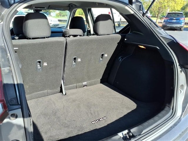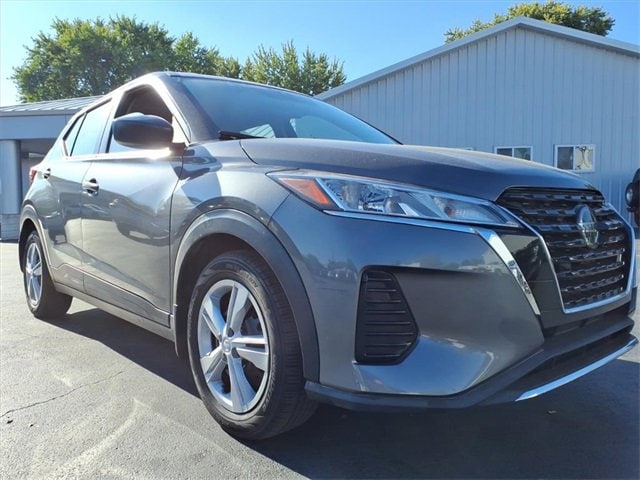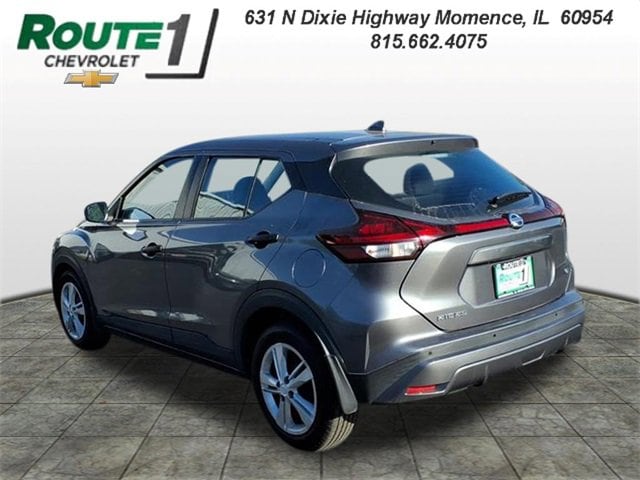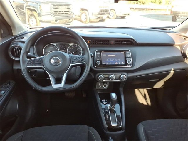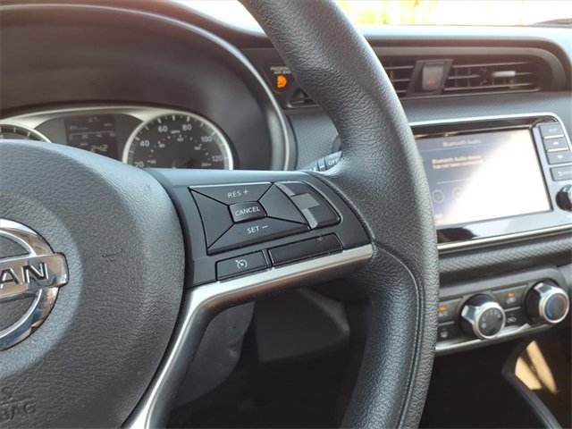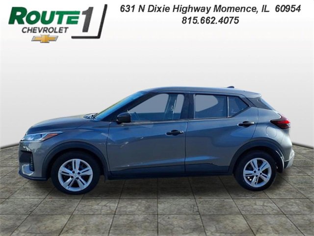 Gun Metallic 2021 Nissan Kicks S FWD CVT with Xtronic 1.6L 4-Cylinder DOHC 16V Apple CarPlay/Android Auto, Carpeted Floor Mats w/Cargo Mat, Center Armrest w/Storage, Driver's Seat Mounted Armrest, Knee airbag, Outside temperature display, Panic alarm, Rear Parking Sensors, Rear reading lights, Rear side impact airbag, Sport steering wheel.