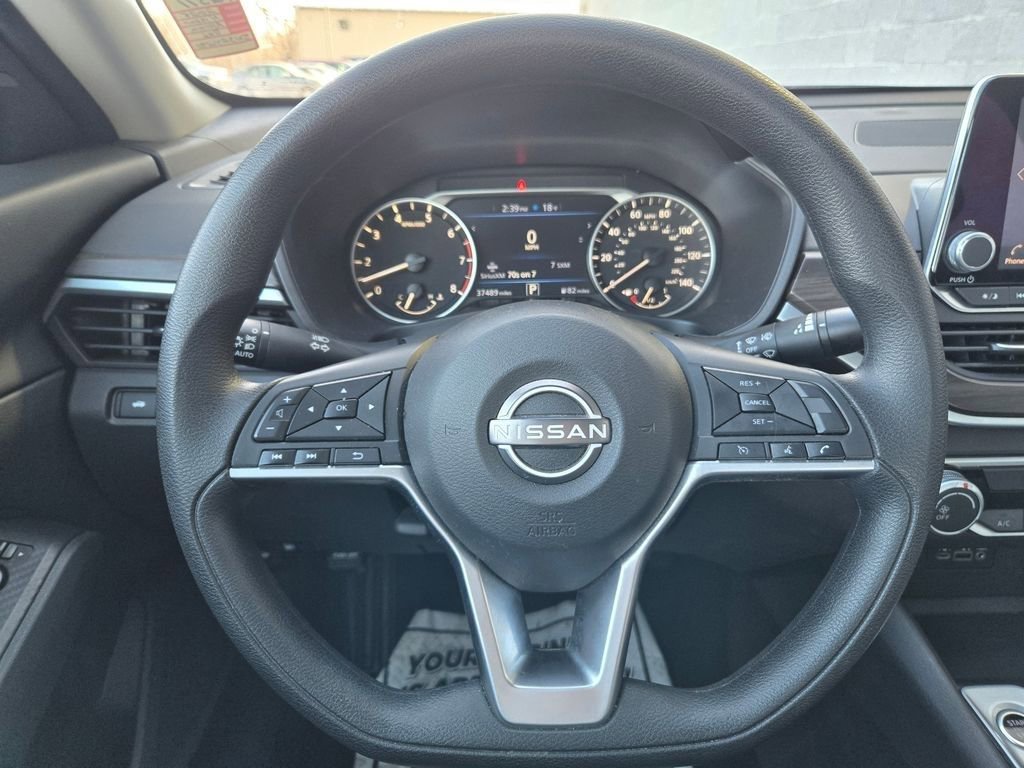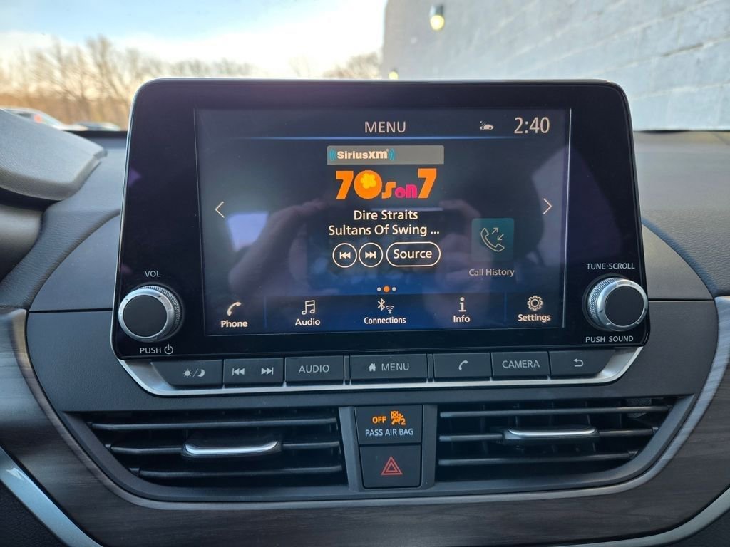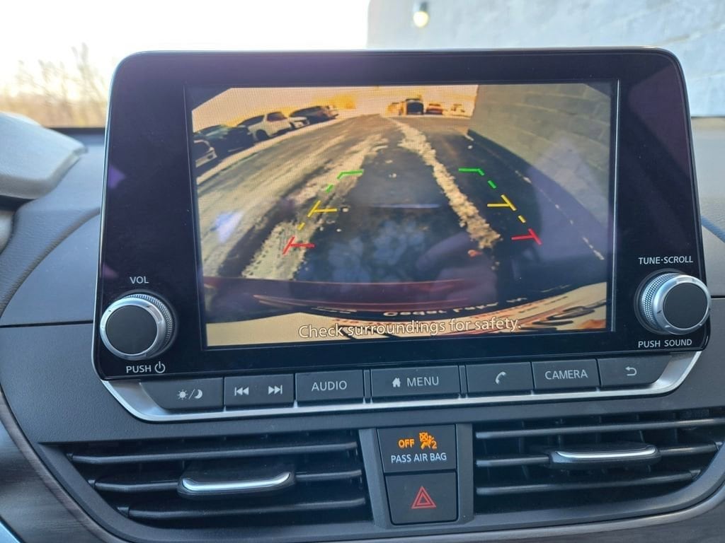 1 OWNER, APPLE CAR PLAY, ANDROID AUTO, TOUCH SCREEN DISPLAY, PUSH BUTTON START, KEYLESS ENTRY, 8-WAY POWER DRIVER SEAT, BLUTOOTH, USB PORTS, LANE DEPARTURE WARNING, BLIND SPOT WARNING, FORWARD COLLISION WARNING SYSTEM, AUTOMATIC EMERGENCY BRAKING (AEB), PREMIUM ALUMINUM WHEELS, STEERING WHEEL W/ AUDIO CONTROLS, INTEGRATED VOICE COMMAND W/ BLUETOOTH, BALANCE OF FACTORY POWERTRAIN WARRANTY, REAR AUTOMATIC PARKING, 8 INCH COLOR TOUCH-SCREEN DISPLAY, Altima 2.5 SV, 4D Sedan, 2.5L 4-Cylinder DOHC 16V, CVT with Xtronic, Garnet Pearl Metallic, Charcoal Cloth, Auto High-beam Headlights, Blind Spot Warning, Brake assist, Delay-off headlights, Dual Zone Automatic HVAC, Electronic Stability Control, Four wheel independent suspension, Fully automatic headlights, NissanConnect featuring Apple CarPlay and Android Auto, NissanConnect Services Powered by SiriusXM, Outside temperature display, Overhead console, Panic alarm, Passenger vanity mirror, Rear Parking Sensors, Rear reading lights, Rear seat center armrest, Rear window defroster, Remote keyless entry, Speed-sensing steering, Split folding rear seat, Steering wheel mounted audio controls, Tachometer, Telescoping steering wheel, Tilt steering wheel, Traction control, Trip computer.