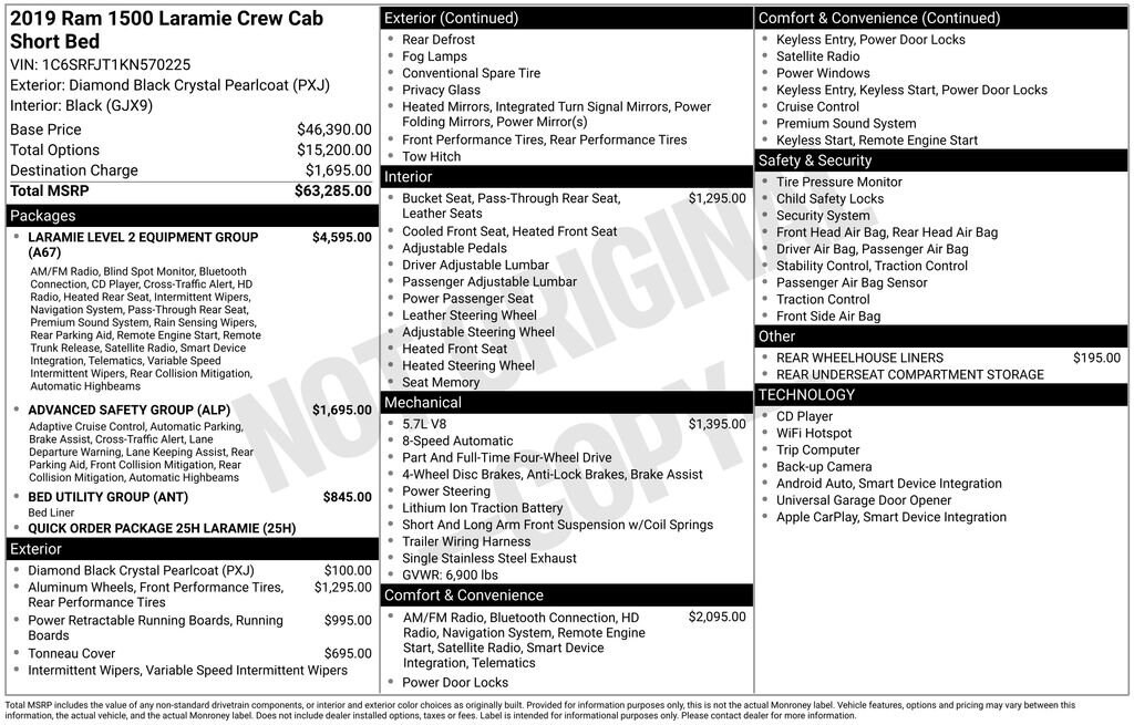 Recent Arrival! 2019 Ram 1500 Laramie Diamond Black Crystal Pearlcoat