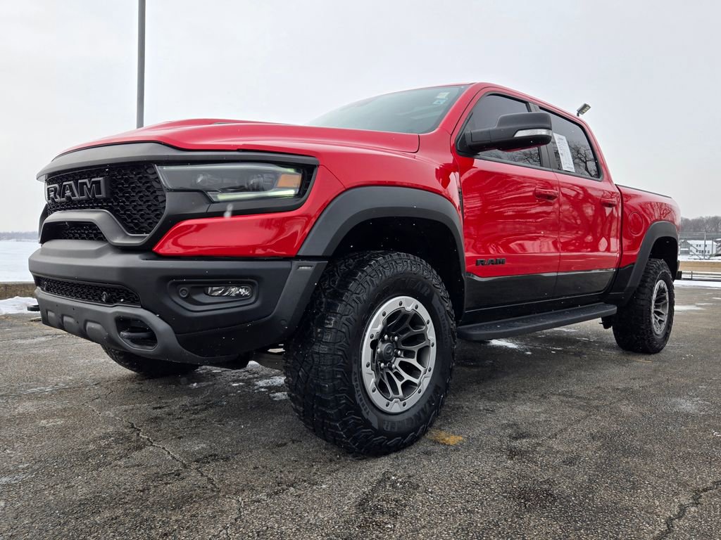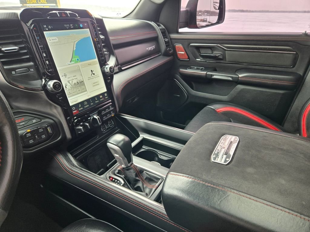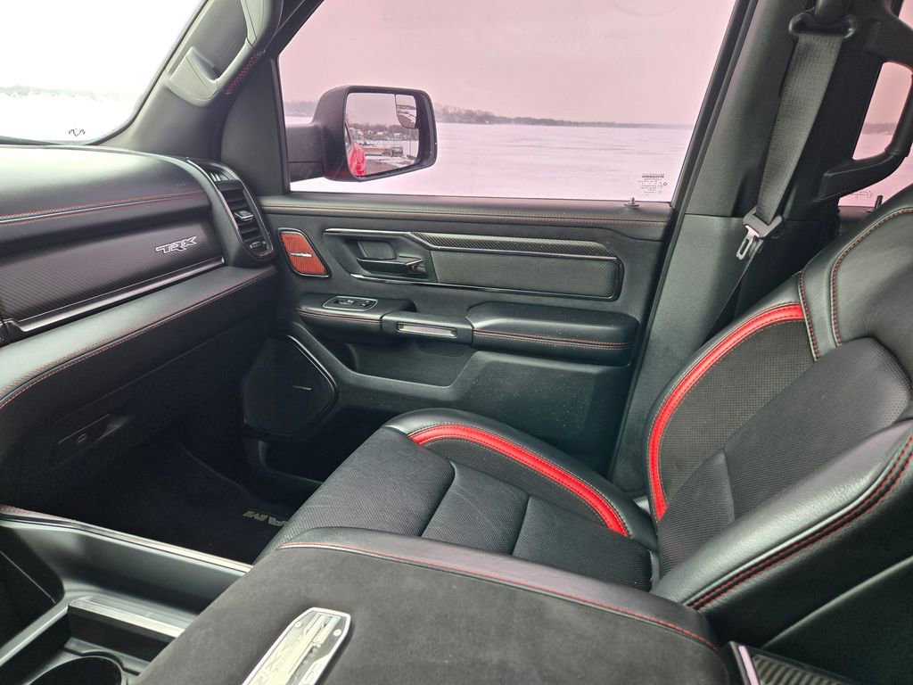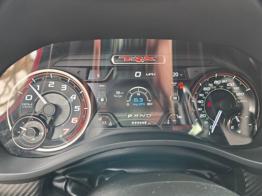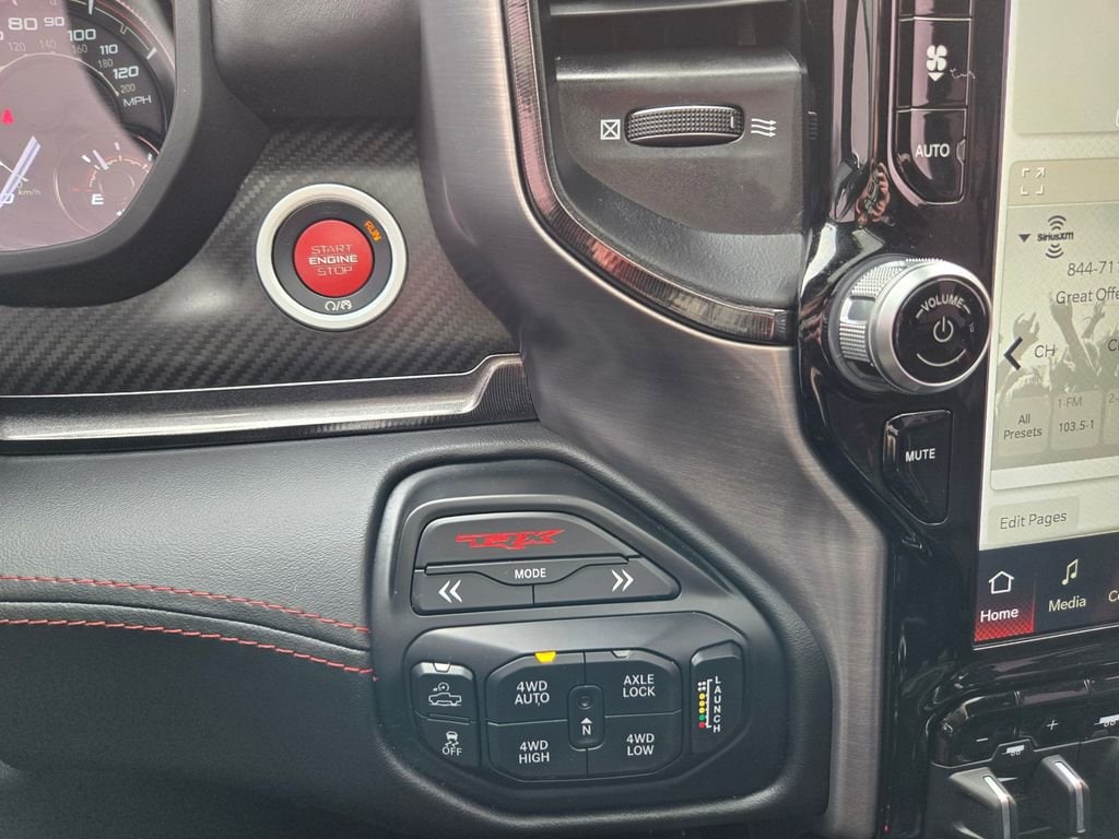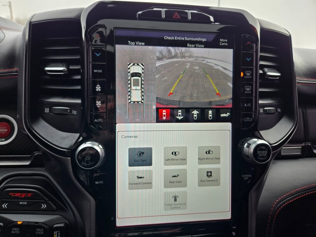 The TRX Level 2 Equipment Group takes this vehicle to new heights, offering a host of premium features that elevate the driving experience. Enjoy the convenience of a Surround View Camera System, Blind Spot & Cross Path Detection, and the added safety of ParkSense Front/Rear Park Assist with Stop. The TRX Carbon Fiber Package and TRX Red Interior Accents add a touch of refined style, while the Mopar Bed-Mounted Tire Carrier and Mopar Off-Road Style Running Boards enhance the rugged capabilities of this impressive truck.