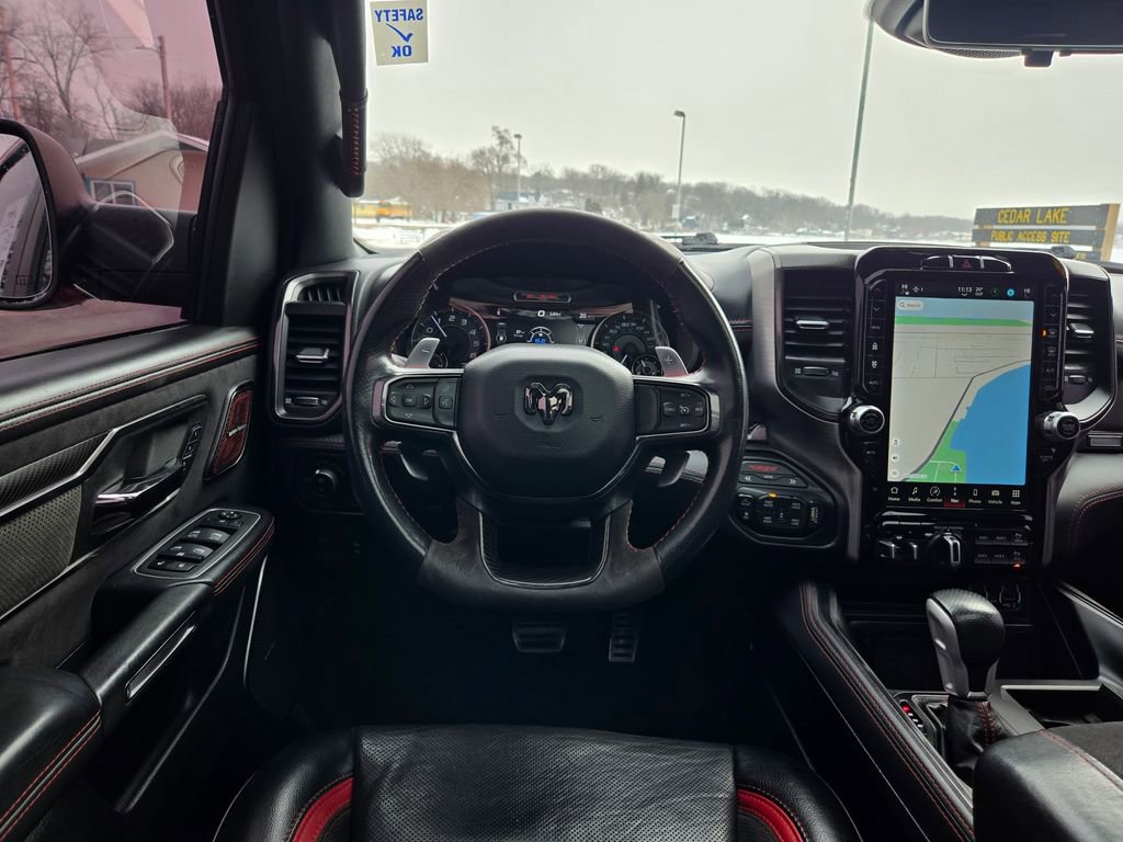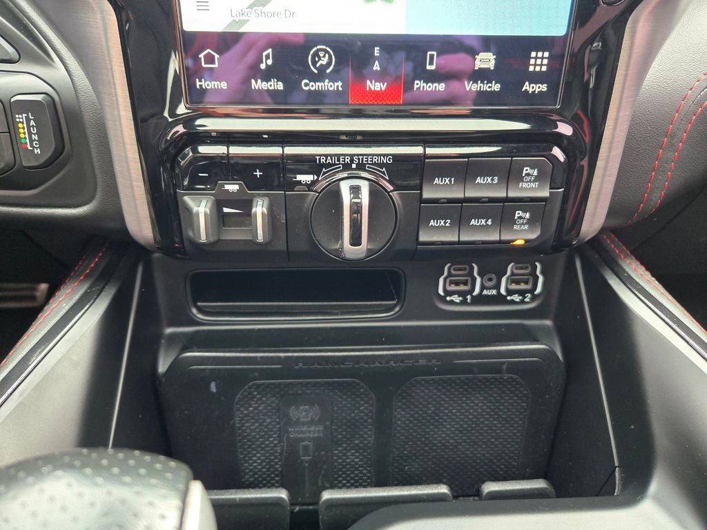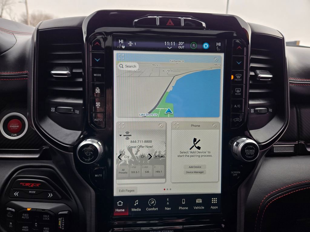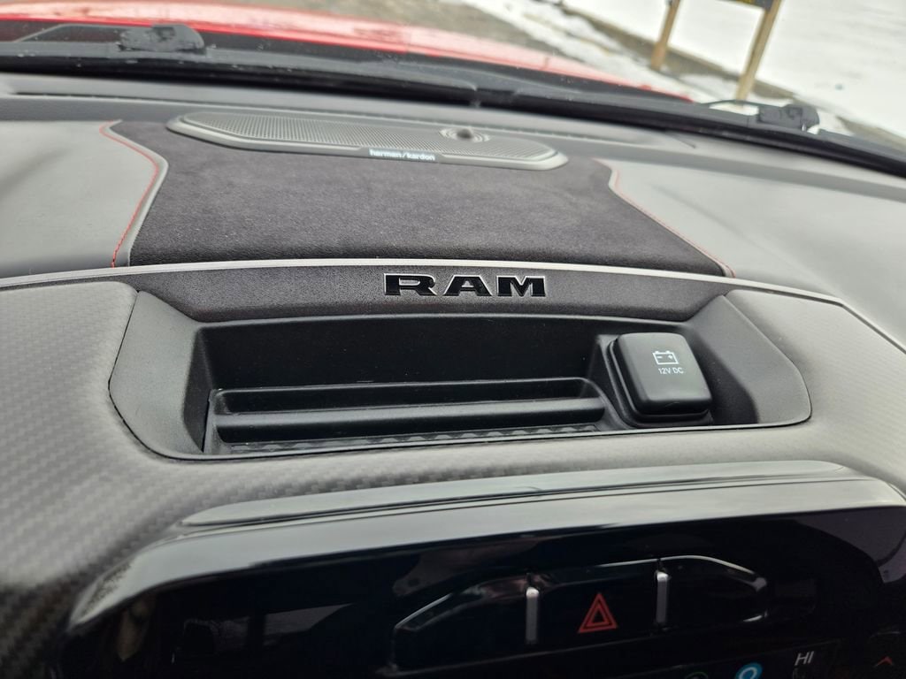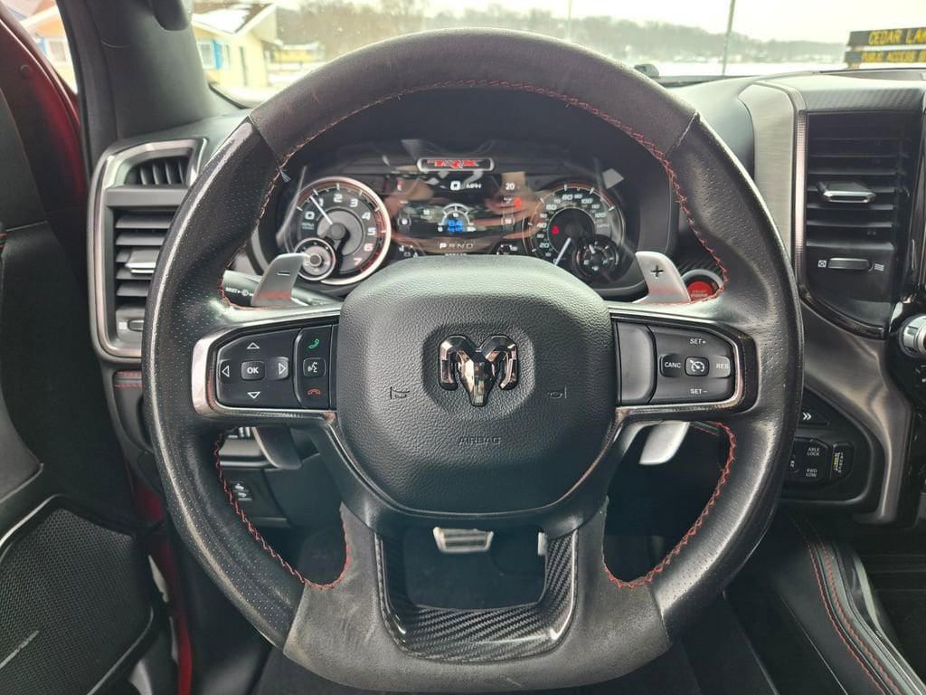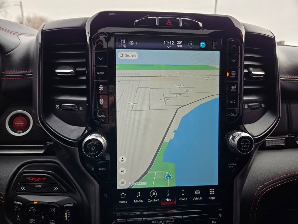 The TRX Level 2 Equipment Group takes this vehicle to new heights, offering a host of premium features that elevate the driving experience. Enjoy the convenience of a Surround View Camera System, Blind Spot & Cross Path Detection, and the added safety of ParkSense Front/Rear Park Assist with Stop. The TRX Carbon Fiber Package and TRX Red Interior Accents add a touch of refined style, while the Mopar Bed-Mounted Tire Carrier and Mopar Off-Road Style Running Boards enhance the rugged capabilities of this impressive truck.