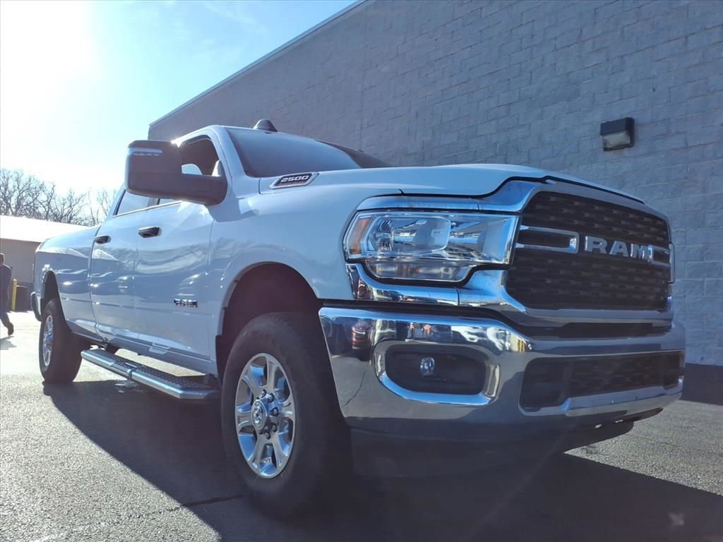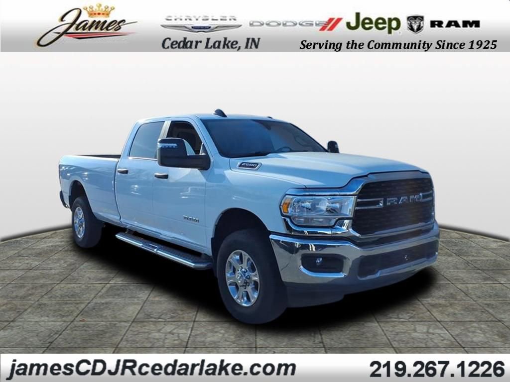 2024 Ram 2500 Big Horn 1 OWNER, APPLE CAR PLAY, ANDROID AUTO, UCONNECT 5 w/ 8.4" TOUCH SCREEN DISPLAY, PUSH BUTTON START, KEYLESS ENTRY, 4 WHEEL DRIVE / 4X4 / 4WD, 8-WAY POWER DRIVER SEAT, POWER LUMBAR ADJUSTABLE DRIVER SEAT, CHROME WHEELS, CHROME STEP TUBES, TOW HITCH, TRAILER BRAKE CONTROLLER, TOW HOOKS, BED LINER, BLUTOOTH, USB PORTS, AUXILLARY PORTS, PARKVIEW REAR BACK UP CAMERA, ALUMINUM WHEELS, STEERING WHEEL W/ AUDIO CONTROLS, INTEGRATED VOICE COMMAND W/ BLUETOOTH, LOW MILES!!, GPS ANTENNA INPUT, POWER HEATED TELESCOPING MIRRORS, 4G LTE WI-FI HOT SPOT, 18X8.0 POLISHED ALUMINUM WHEELS, 6.4L V8 HEAVY DUTY HEMI MDS ENGINE, CLASS V RECEIVER HITCH, 7 PIN WIRING HARNESS, 32 GALLON FUEL TANK, LONG BOX/ 8 FT BED, 2500 Big Horn, 4D Crew Cab, 6.4L V8, 8-Speed Automatic, 4WD, Bright White Clearcoat, Diesel Gray/Black Cloth, 2 Way Rear Headrest Seat, 2nd Row In Floor Storage Bins, 4 Way Front Headrests, 40/20/40 Split Bench Seat, 4G LTE Wi-Fi Hot Spot, 6 Speakers, 8.4" Touchscreen Display, Apple CarPlay, Auto Power-Folding Mirrors, Big Horn IP Badge, Black Exterior Mirrors, Bluetooth Handsfree Phone & Audio, Center Hub, Chrome Flat Cab-Length Side Steps, Connectivity - US/Canada, Delay-off headlights, Dual Glove Boxes, Emergency communication system: SiriusXM Guardian, Exterior Mirrors Courtesy Lamps, Exterior Mirrors w/Heating Element, Exterior Mirrors w/Supplemental Signals, Foam Bottle Insert (Door Trim Panel), Footwell Courtesy Lamp, For Details, Visit DriveUconnect.com, For More Info, Call 800-643-2112, Forward & Reverse Utility Lights, Front Armrest w/Cupholders, Front Center Seat Cushion Storage, Front Fog Lamps, Front Seat Back Map Pockets, Fully automatic headlights, Global Telematics Box Module (TBM), Glove Box Lamp, Google Android Auto, GPS Antenna Input, Integrated Center Stack Radio, Integrated Voice Command w/Bluetooth, Leather Wrapped Steering Wheel, Level 1 Equipment Group, Locking Lower Glove Box, Manual Adjust 4-Way Driver Seat, Manual Adjust 4-Way Front Passenger Seat, Mirror Running Lights, Panic alarm, Power 2-Way Driver Lumbar Adjust, Power Adjust 8-Way Driver Seat, Power Adjust Mirrors, Power Adjustable Convex Aux Mirrors, Power Heated Fold Telescope Mirrors, Power Telescoping Mirrors, Premium Cloth 40/20/40 Bench Seat, Premium Cloth 40/20/40 Bench Seat (DISC), Radio data system, Radio: Uconnect 5 W w/8.4" Display, Radio: Uconnect 5 W w/8.4" Display (A62), Rear 60/40 Folding Seat, Rear Dome w/On/Off Switch Lamp, Rear Folding Seat, Remote keyless entry, Remote USB Port - Charge Only, SiriusXM Radio Service, SiriusXM Satellite Radio, Steering Wheel Mounted Audio Controls, Storage Tray, Tip Start, Tire Fill Alert, Tow Hooks, Traction control, Wheels: 18" x 8.0" Polished Aluminum. Bright White Clearcoat