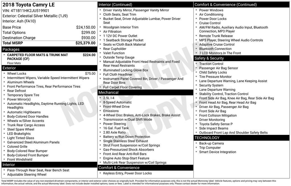 Don't miss out on the opportunity to make this 2018 Toyota Camry LE your own. Schedule your test drive today and let us demonstrate why this vehicle is the perfect fit for your lifestyle.