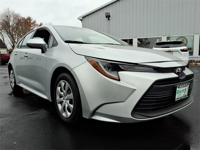 Silver 2025 Toyota Corolla LE FWD CVT 2.0L I4 DOHC 16V 4-Wheel Disc Brakes, 6 Speakers, ABS brakes, Air Conditioning, AM/FM radio: SiriusXM, Apple CarPlay/Android Auto, Auto High-beam Headlights, Automatic temperature control, Brake assist, Bumpers: body-color, Delay-off headlights, Driver door bin, Driver vanity mirror, Dual front impact airbags, Dual front side impact airbags, Electronic Stability Control, Emergency communication system: Safety Connect (up to 10-year trial subscription), Exterior Parking Camera Rear, Fabric Seat Trim, Front anti-roll bar, Front Bucket Seats, Front Center Armrest, Front reading lights, Front wheel independent suspension, Fully automatic headlights, Illuminated entry, Knee airbag, Low tire pressure warning, Occupant sensing airbag, Outside temperature display, Overhead airbag, Panic alarm, Passenger door bin, Passenger vanity mirror, Power door mirrors, Power steering, Power windows, Radio data system, Radio: 8 Toyota Audio Multimedia, Rear anti-roll bar, Rear seat center armrest, Rear side impact airbag, Rear window defroster, Remote keyless entry, Speed control, Split folding rear seat, Steering wheel mounted audio controls, Tachometer, Telescoping steering wheel, Tilt steering wheel, Traction control, Trip computer, Wheels: 16 Steel with Covers.Good Credit, Bad Credit, No Credit. Here at Route ! Chevrolet Buick we can help. Come feel the magic. We know that you have high expectations, and as a car dealer we enjoy the challenge of meeting and exceeding those standards each and every time. Allow us to demonstrate our commitment to excellence! NO GIMMICKS! Our experienced sales staff will help you find the best car for you. Browse our online inventory, schedule a test drive and look at our financing options. Find more information about our vehicles by visiting https://www.route1chevybuick.com or by calling (815)-472-3434. 32/41 City/Highway MPG