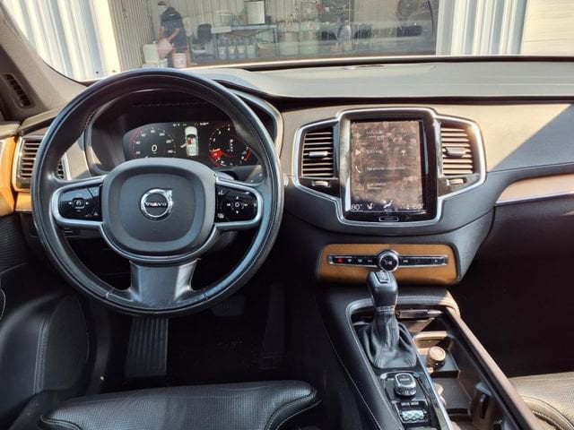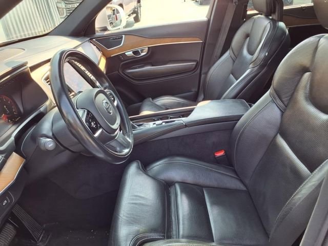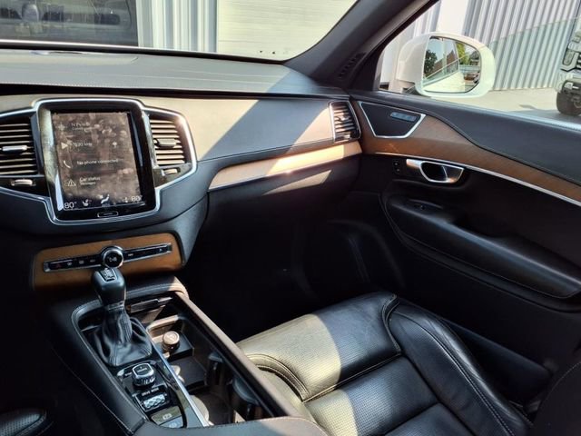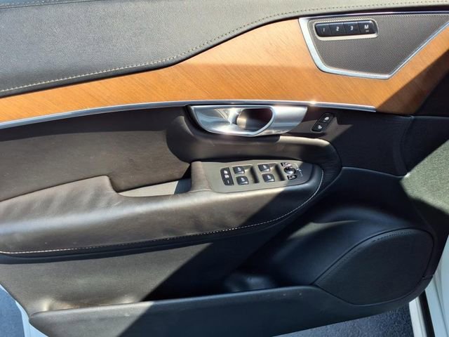 Crystal White Pearl 2017 Volvo XC90 T6 Inscription AWD Automatic with Geartronic I4 Supercharged AWD, Charcoal Leather, 10 Speakers, 12V Power Outlet in Cargo Area, 3rd row seats: bucket, 4-Wheel Disc Brakes, A/V remote, ABS brakes, Air Conditioning, Alloy wheels, AM/FM radio: SiriusXM, Anti-whiplash front head restraints, Apple CarPlay, Auto High-beam Headlights, Auto-dimming Rear-View mirror, Automatic temperature control, Bodyside moldings, Brake assist, Bumpers: body-color, Convenience Package, Delay-off headlights, Digital Compass, Driver door bin, Driver vanity mirror, Dual front impact airbags, Dual front side impact airbags, Electronic Stability Control, Emergency communication system: Volvo On-Call, Exterior Parking Camera Rear, Four wheel independent suspension, Front anti-roll bar, Front Bucket Seats, Front Center Armrest w/Storage, Front dual zone A/C, Front fog lights, Front reading lights, Fully automatic headlights, Genuine wood dashboard insert, Genuine wood door panel insert, Grocery Bag Holder, Headlight cleaning, Heated door mirrors, Heated Front Bucket Seats, Heated front seats, Heated Steering Wheel, HomeLink, Illuminated entry, Knee airbag, Lane Keeping Aid, Leather Shift Knob, Low tire pressure warning, Memory seat, Nappa Leather Seating Surfaces w/Charcoal Interior, Navigation System, Occupant sensing airbag, Outside temperature display, Overhead airbag, Panic alarm, Park Assist Pilot, Passenger door bin, Passenger vanity mirror, Pilot Assist Driver Assistance System, Power door mirrors, Power driver seat, Power Liftgate, Power moonroof, Power passenger seat, Power steering, Power windows, Premium audio system: Sensus Connect, Radio data system, Radio: High Performance Audio System, Rain sensing wipers, Rear air conditioning, Rear anti-roll bar, Rear dual zone A/C, Rear fog lights, Rear Parking Sensors, Rear reading lights, Rear seat center armrest, Rear window defroster, Rear window wiper, Remote keyless entry, Roof rack: rails only, Security system, Speed control, Speed-sensing steering, Split folding rear seat, Spoiler, Steering wheel mounted audio controls, Tachometer, Telescoping steering wheel, Tilt steering wheel, Traction control, Trip computer, Turn signal indicator mirrors, Variably intermittent wipers, Ventilated front seats, Wheels: 20 10-Spoke Tinted Silver Diamond Cut.